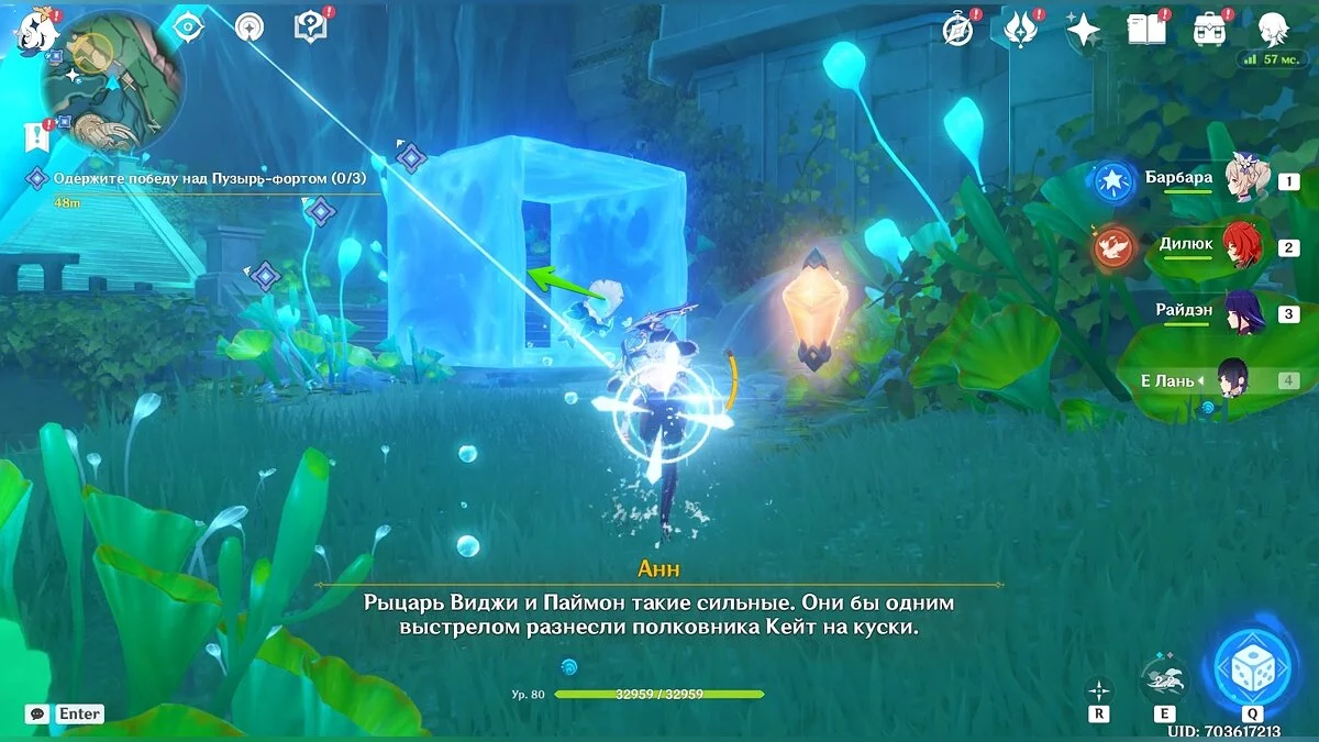 Поднимитесь к башне и побеседуйте с элементалями воды — задание обновится. Нужно одолеть три пузыря, находящихся в данной локации. Вы можете начать с любого, но мы рекомендуем в первую очередь отправиться к пузырю справа.