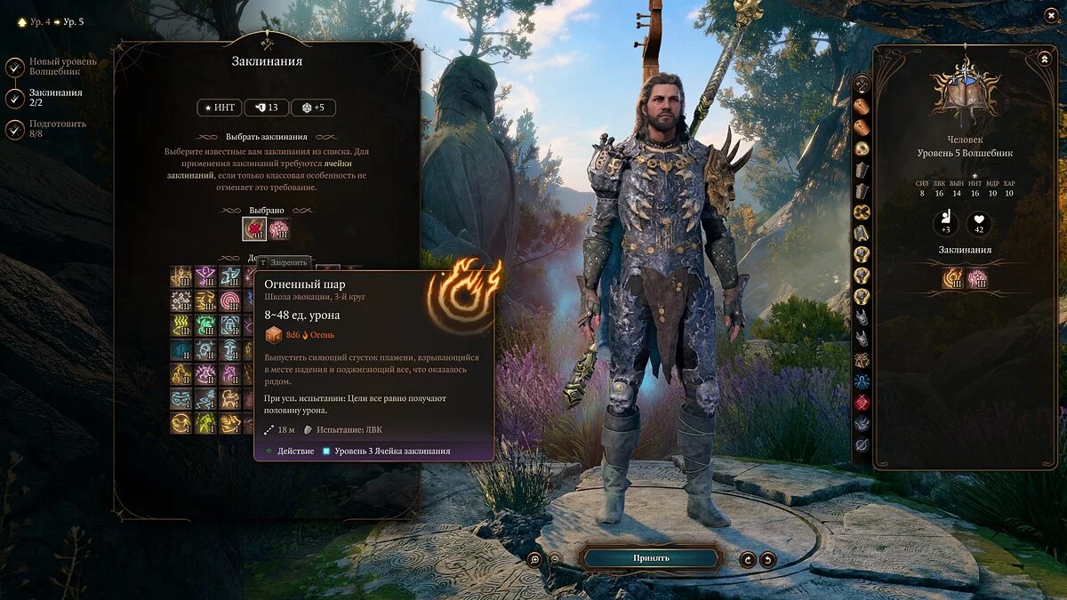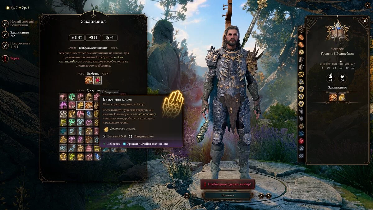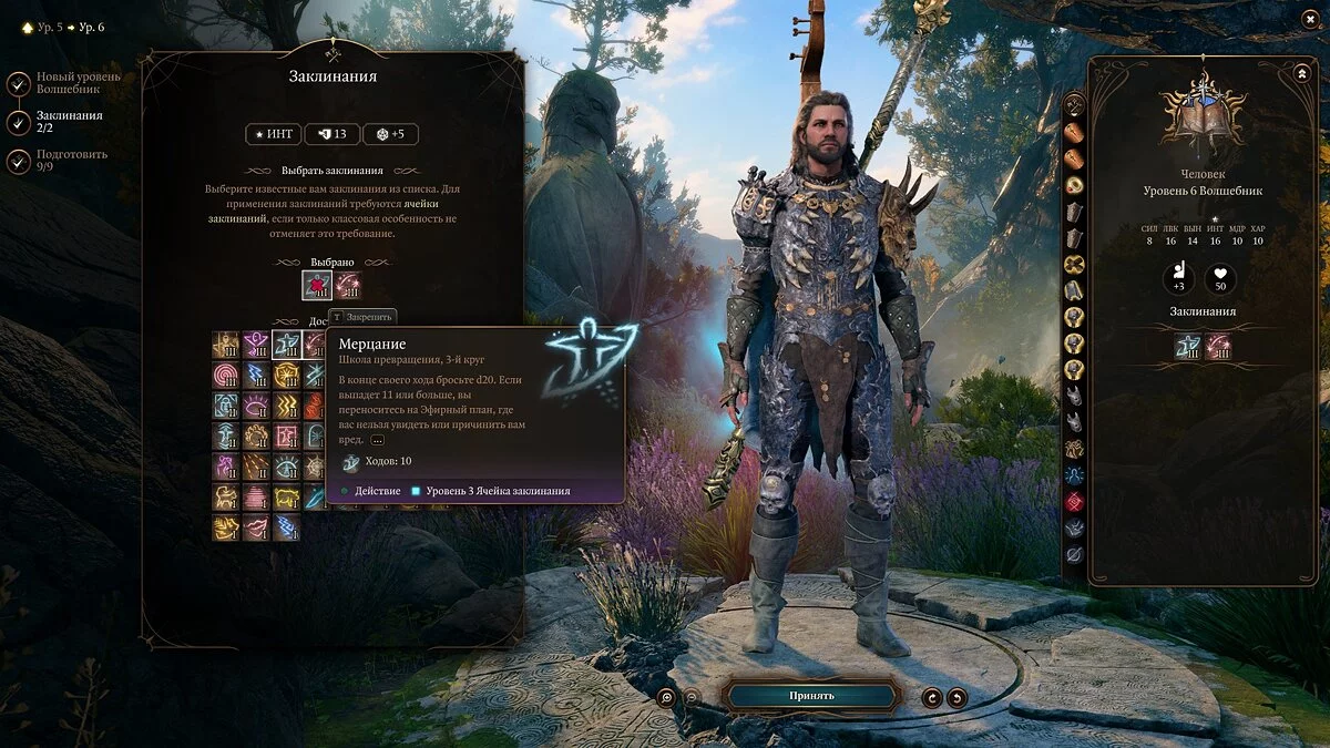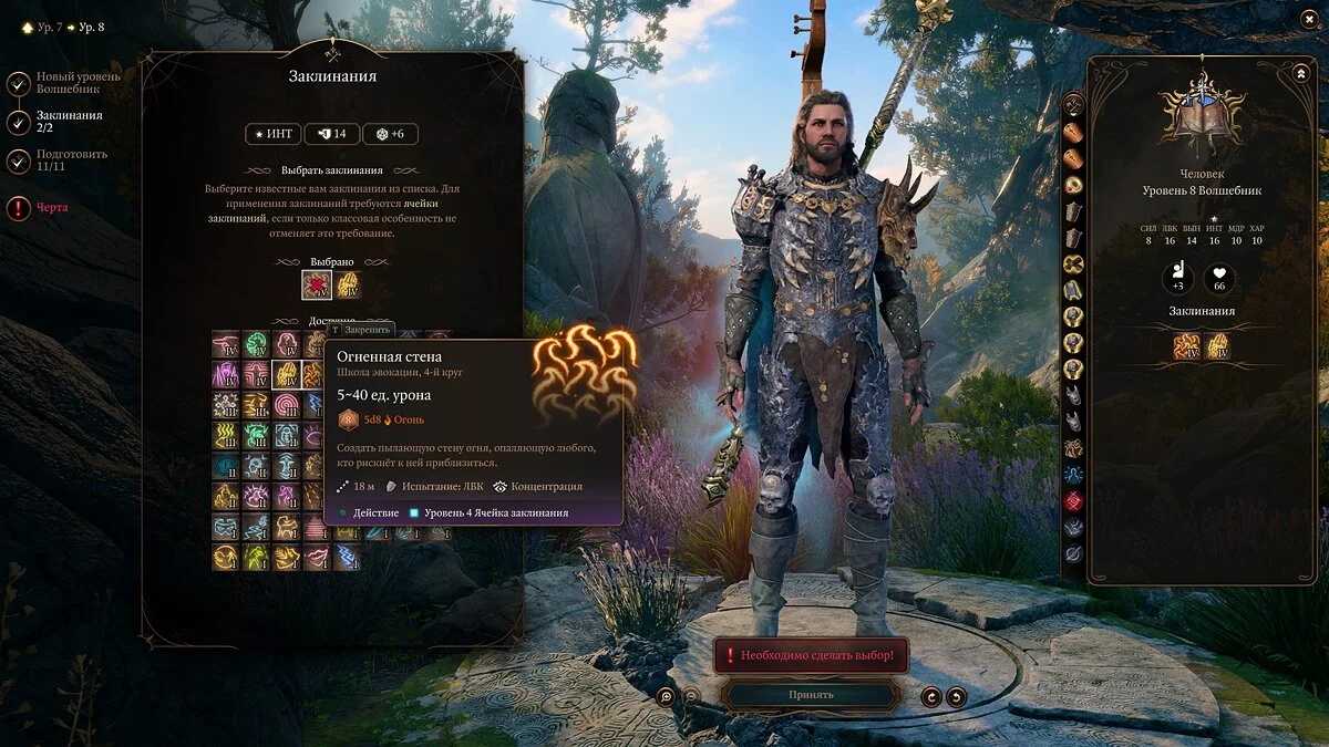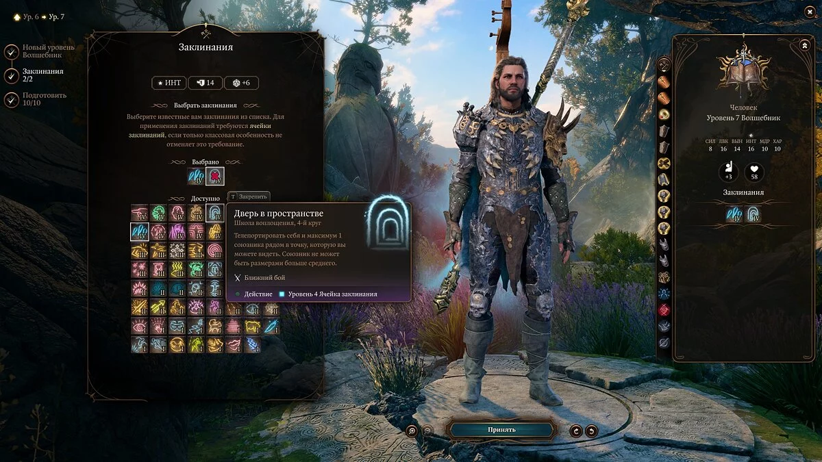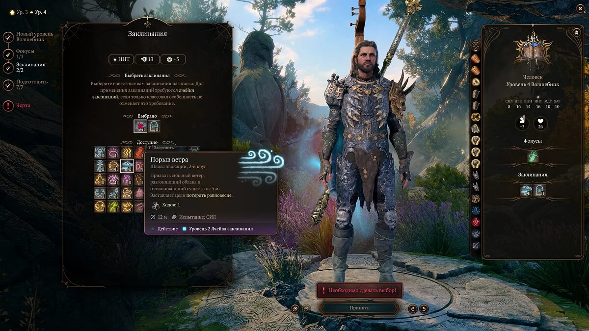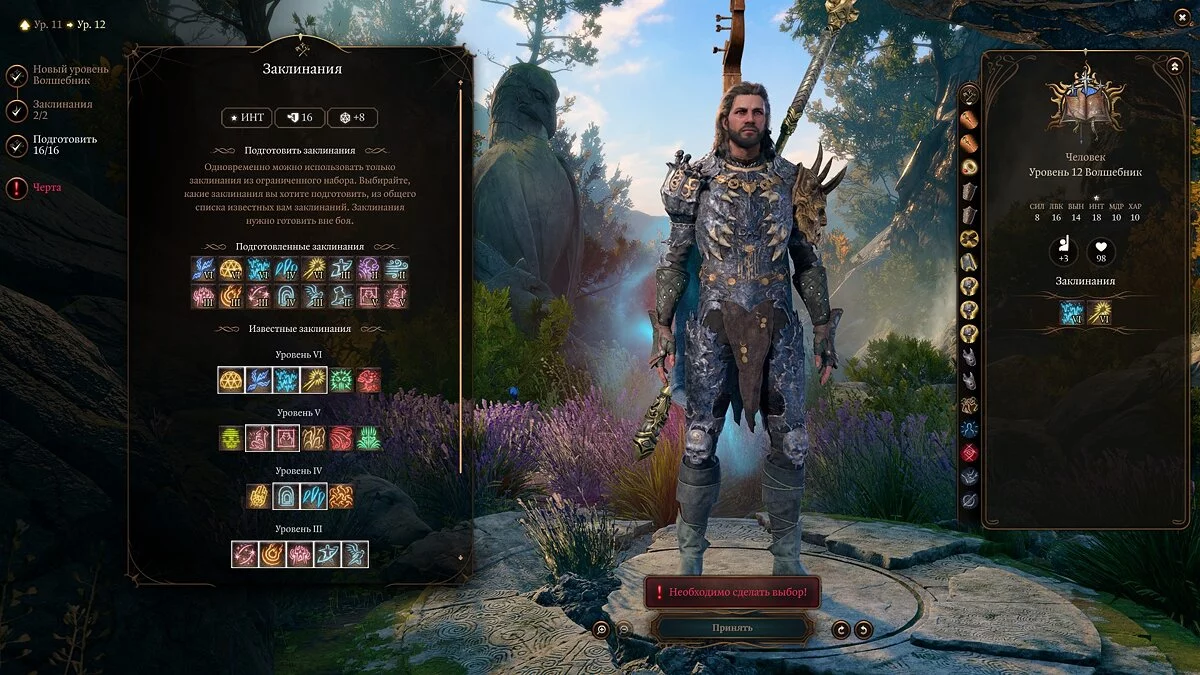Примечание: не забывайте, что выученные заклинания можно менять через «Книгу заклинаний».