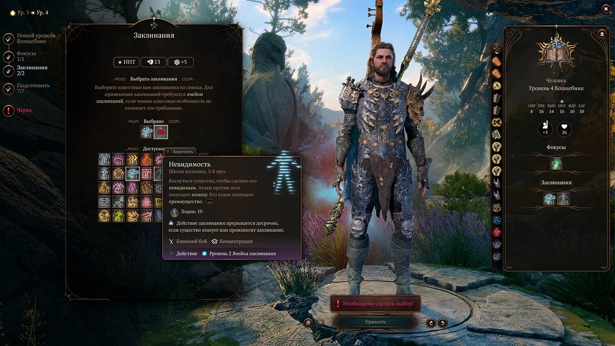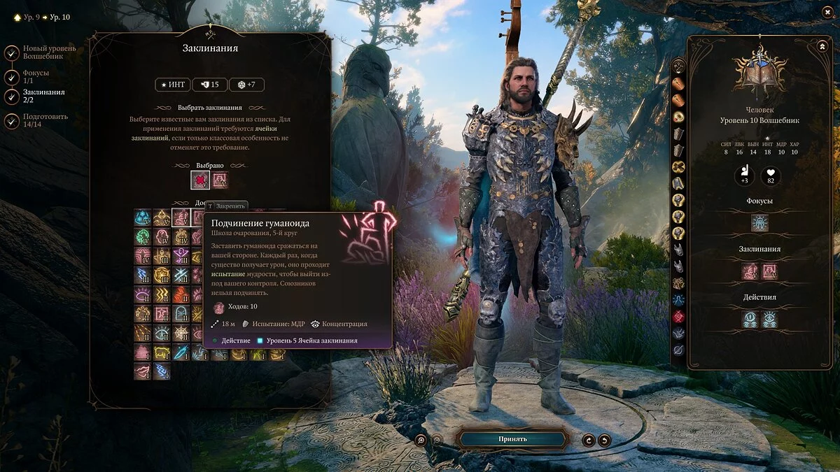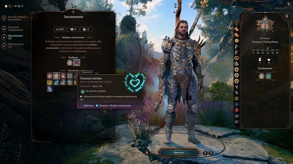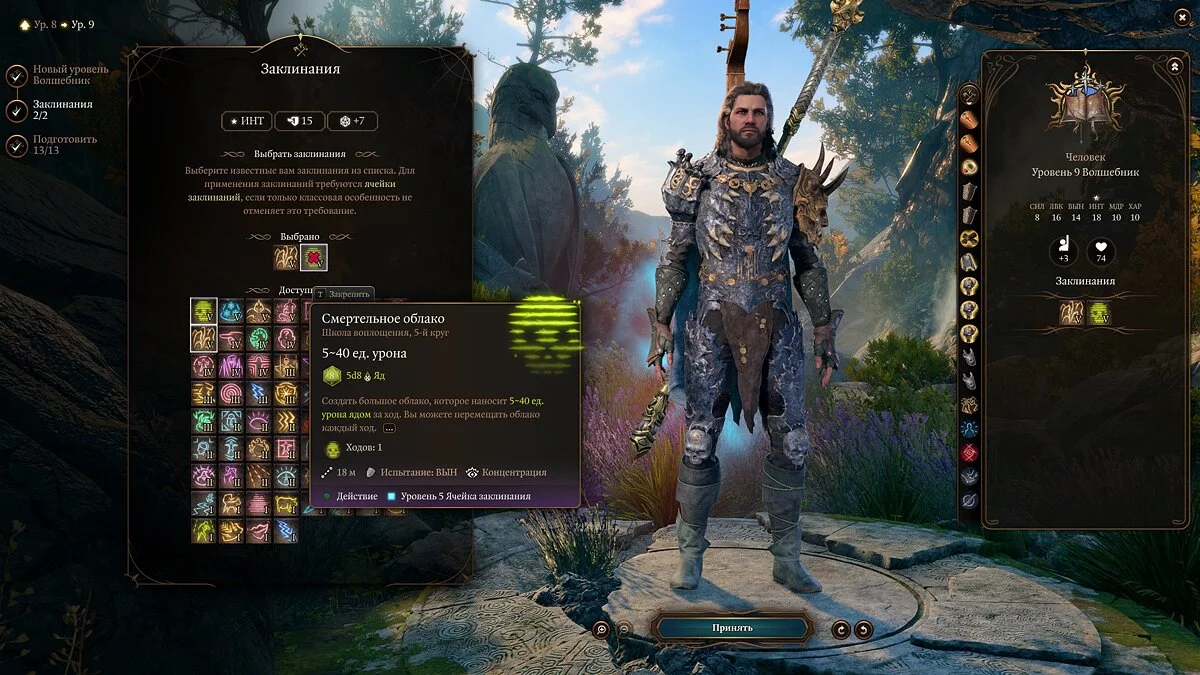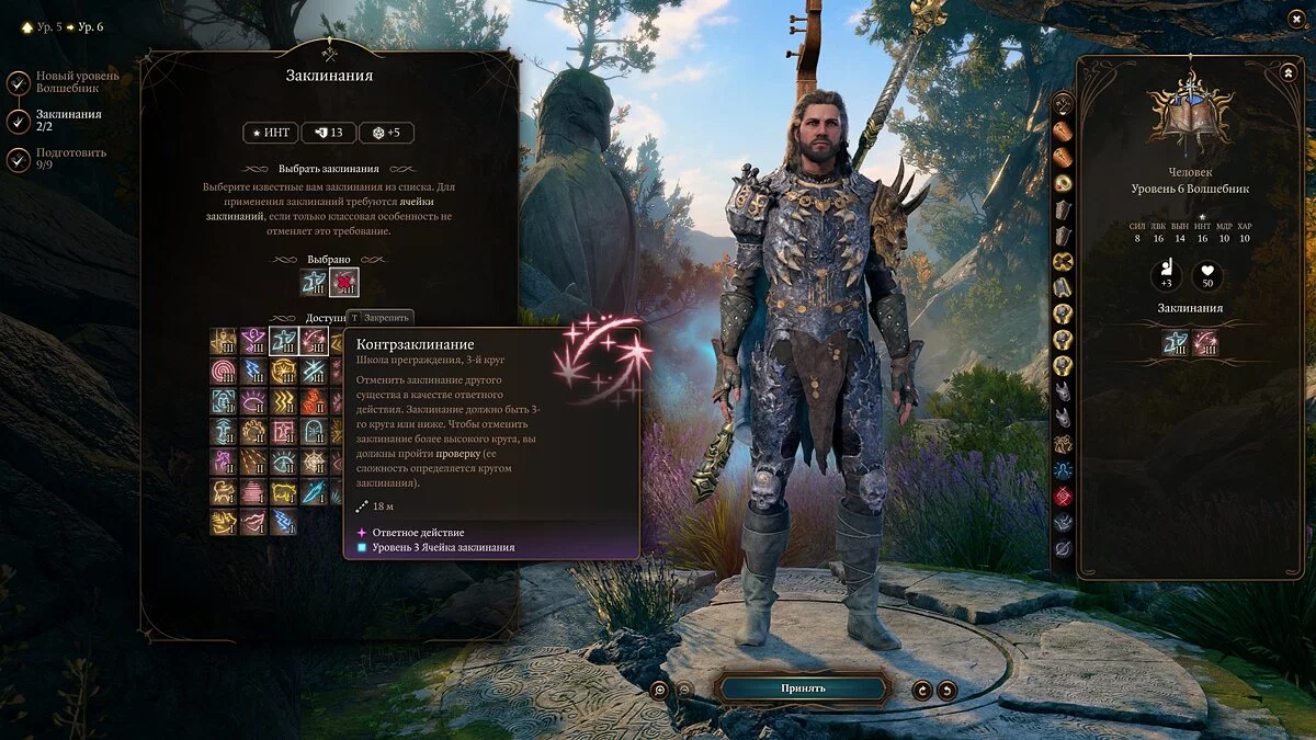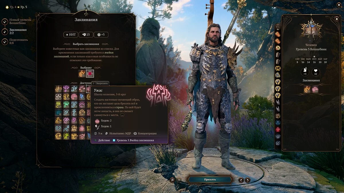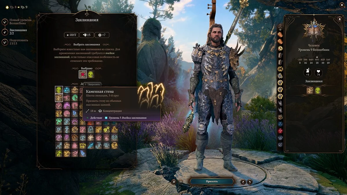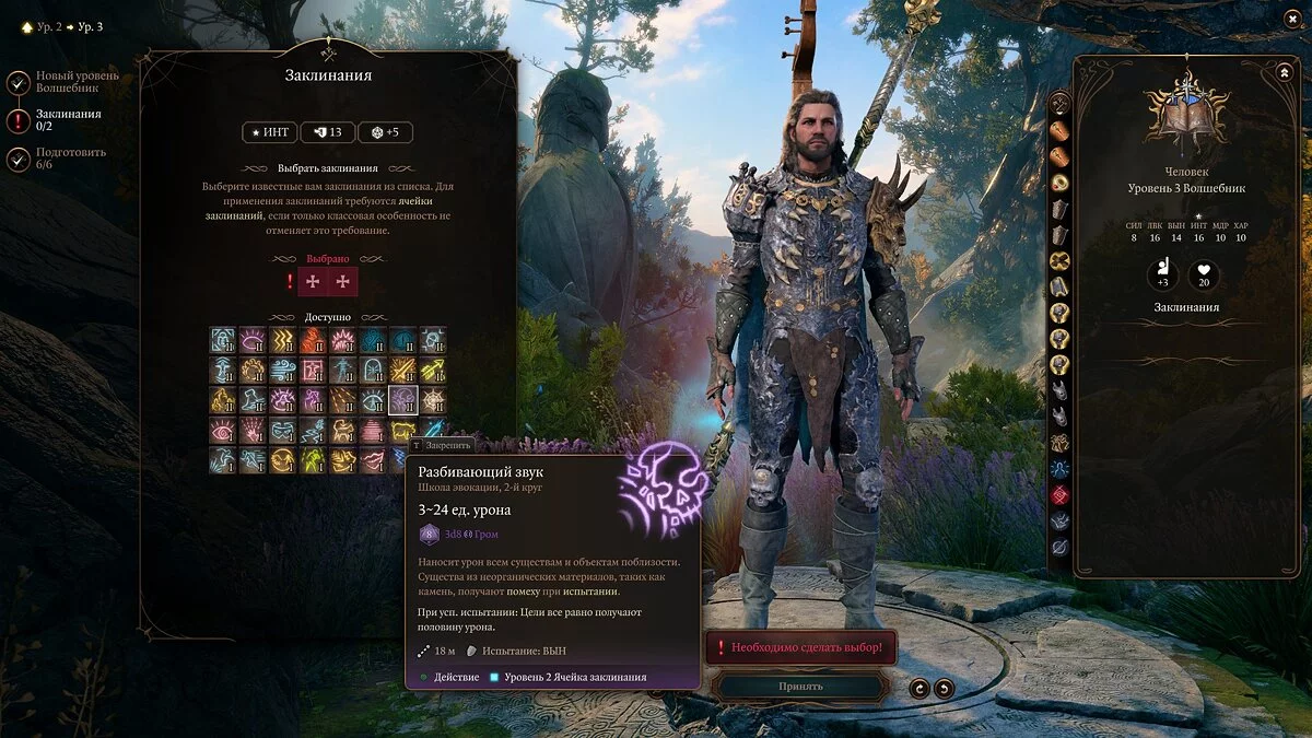 Примечание: не забывайте, что выученные заклинания можно менять через «Книгу заклинаний».