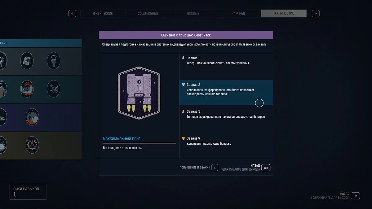 - Усиленные тренировки (Boost Pack Training) — вы получите доступ к использованию бустпака. Прокачка уменьшает цену топлива и ускоряет его регенерацию;