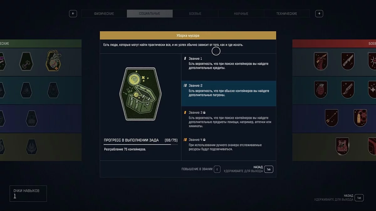 - Утилизация (Scavenging) — вы находите больше полезных ресурсов и расходников в контейнерах. При прокачке нужные ресурсы будут подсвечиваться сканером;