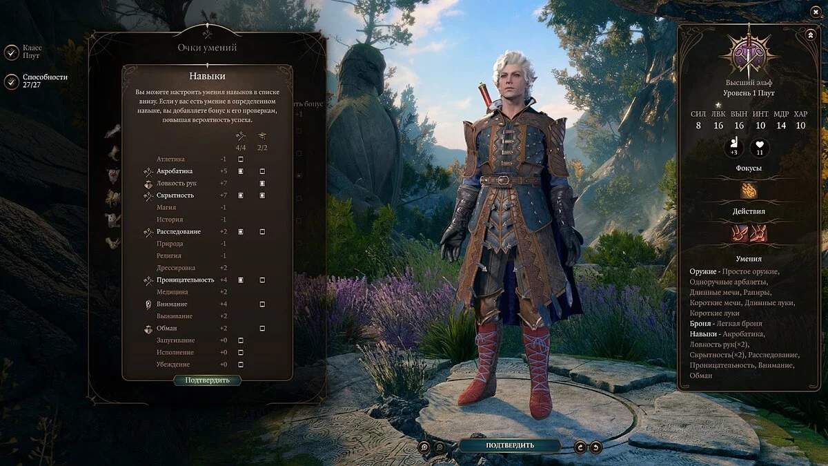 Казалось бы, что может быть проще, чем подкрасться сзади и убить? Вероятно, ничего, но надо ещё знать, как сделать это наиболее безопасно для самого плута. Помните, что плут — это зачастую про стелс, поэтому такой навык как «Скрытность» для него очень важен, а к нему необходимо автоматически добавить «Ловкость рук». К тому же при правильном распределении характеристик он становится ходячей машиной для убийств, которая может посоперничать даже с варваром или воином.