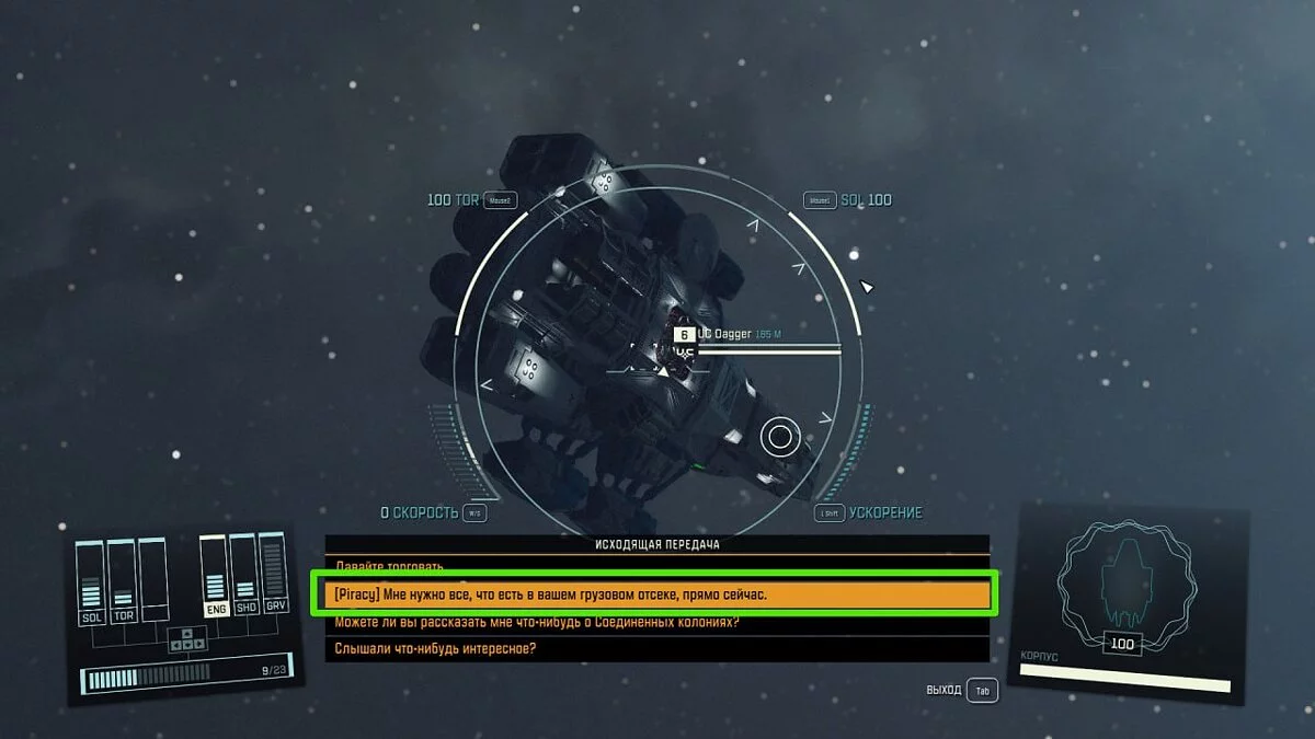 Во время путешествий по космосу в Starfield вы можете представляться пиратом и требовать от других кораблей, чтобы они отдали вам деньги и содержимое трюма. После этого возможно два расклада. Либо экипаж согласится на ваши условия, либо попробует дать бой. Во втором случае вам нужно иметь достаточную огневую мощь, чтобы выйти победителем. Можно добить вражеский звёздолёт и собрать выпавшие ресурсы или же взять его на абордаж.
