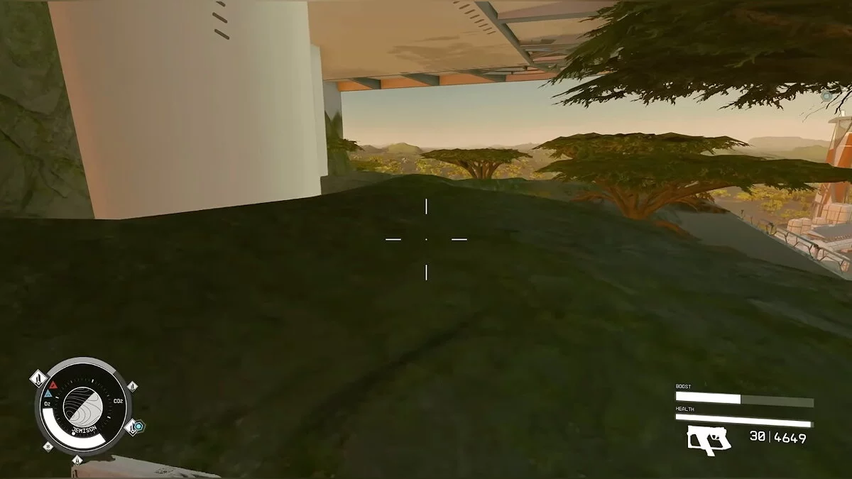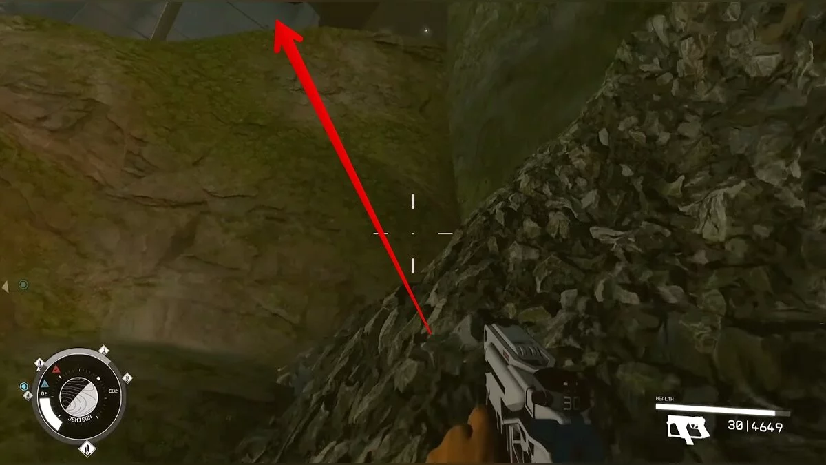 Когда вы окажетесь внизу, бегите направо и по холму забирайтесь наверх. Здесь вы поймаете странный глюк, который позволит совершить полёт. Следует обойти бежевую колонну по периметру, забраться на зелёный холм и спрыгнуть вниз.