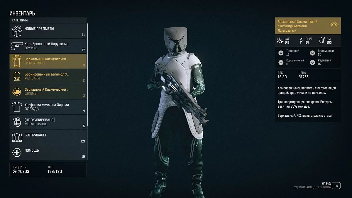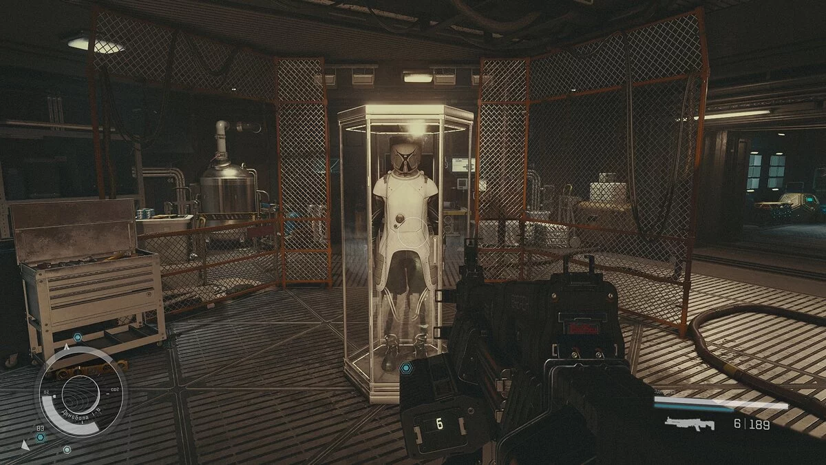 Конечно, сперва отправляйтесь за снаряжением. По пути также могут встречаться роботы, так что особо не расслабляйтесь. Если на данном этапе игры у вас сравнительно небольшой уровень, то можете сразу же экипировать легендарную броню. По характеристикам эта униформа лишь немного уступает уникальному сету, который вы получите за первое прохождение сюжетной кампании Starfield. Неплохой бонус!