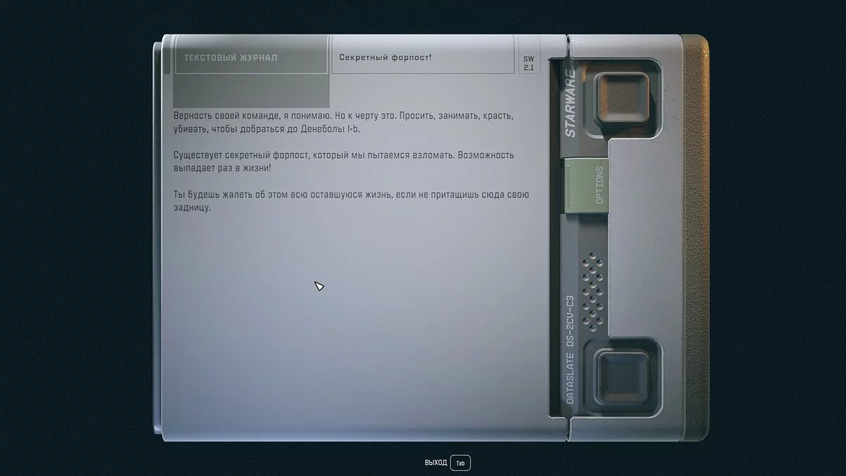 Многие миссии в Starfield станут активны только после того, как вы прослушаете некоторую информацию или найдёте отдельные записи. Например, во время выполнения одной из сюжетных миссий «Старый район» вы посетите станцию Nova Galactic Staryard на орбите Луны, что в Солнечной системе (Sol). Здесь же можно будет отыскать предмет, при помощи которого начнётся скрытое задание.