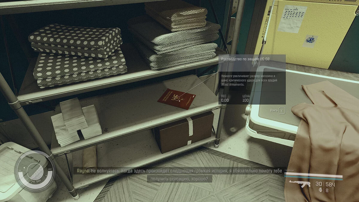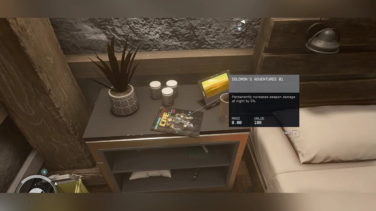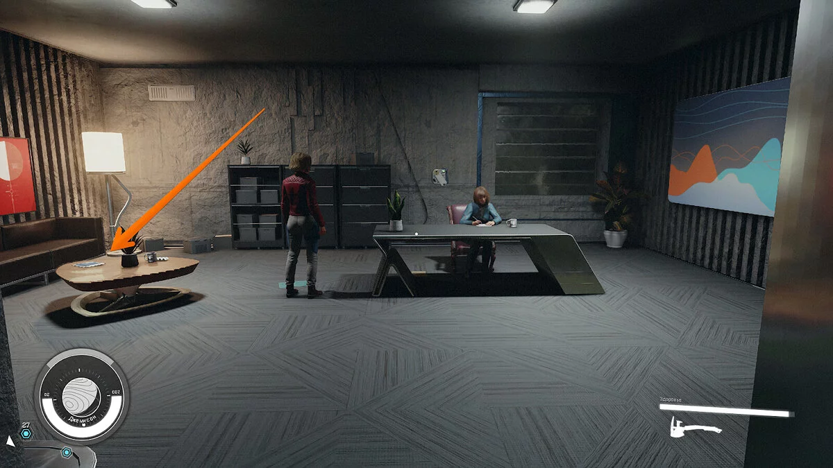 - Местонахождение — Напротив торговца, у которого вы можете продавать контрабанду, будут находиться рабочая комната и зона отдыха. Журнал лежит на полке у кроватей.