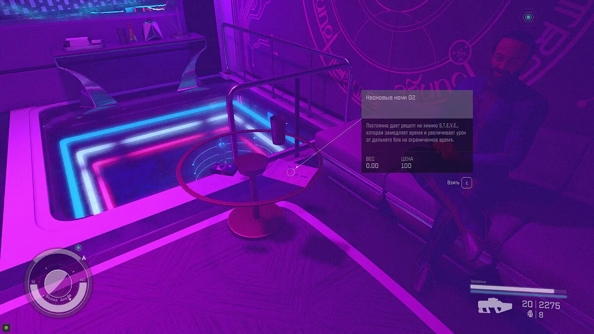 - Местонахождение — Заходим в бар на Неоне (Astral Lounge) и поднимаемся на лифте к вип-балкону на втором этаже. Сюда вы попадёте по квестам «Рюджин Индастрис» (Ryujin Industries), которые мы разобрали в отдельном гайде.