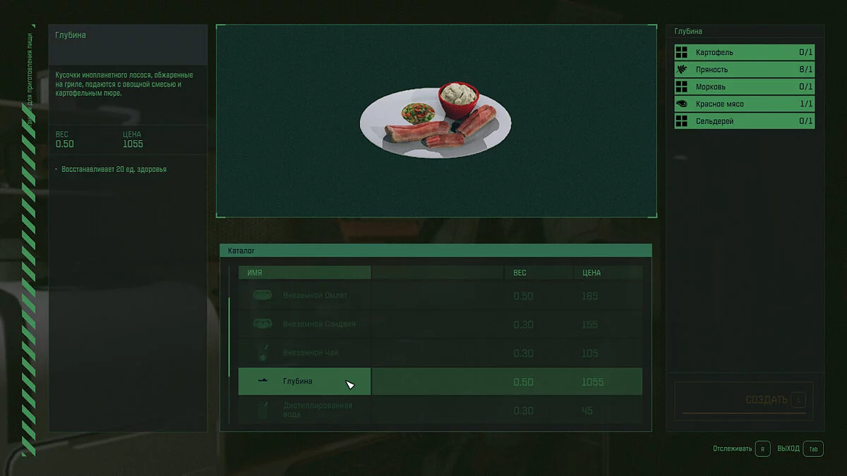 - Свойства — Открывает рецепт блюда «Глубина»;