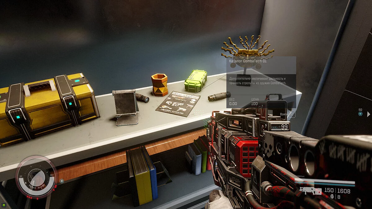 - Свойства — Немного увеличивает дальность и точность оружия CombaTech;