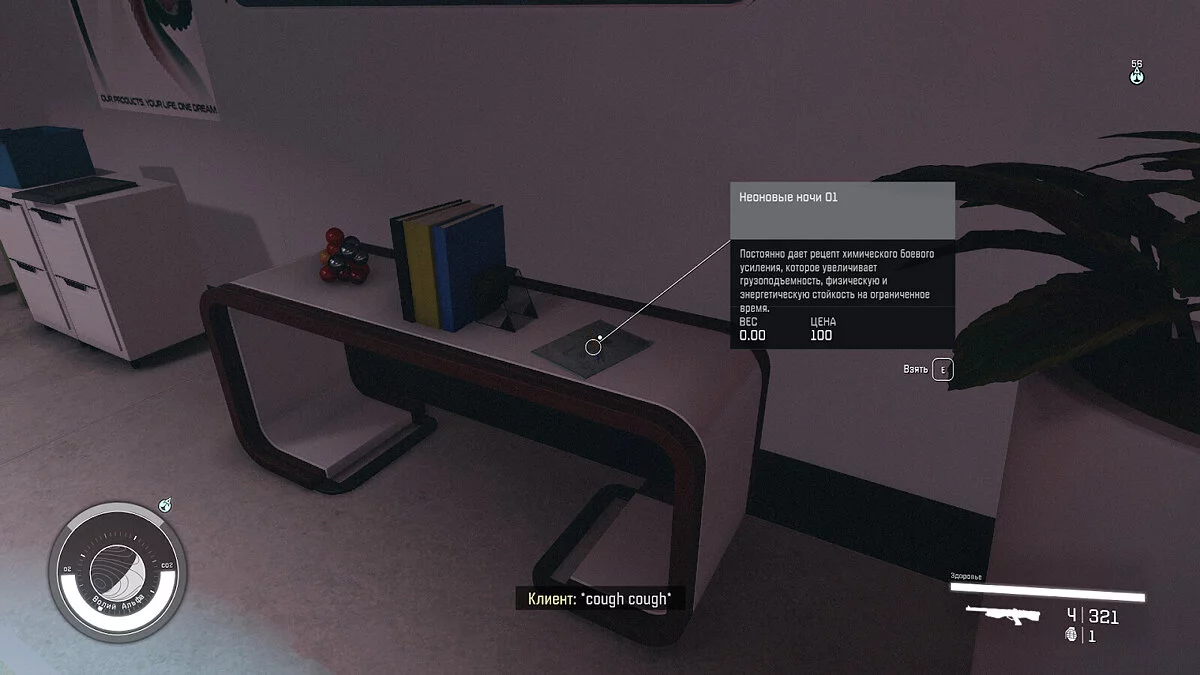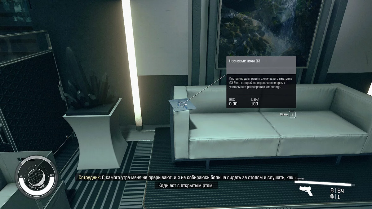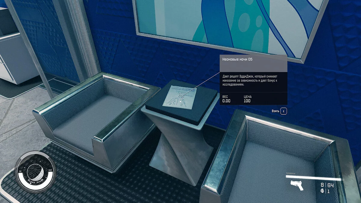 - Свойства — Открывает рецепт на химию S.T.E.V.E., которая замедляет время и увеличивает урон дальнего боя;