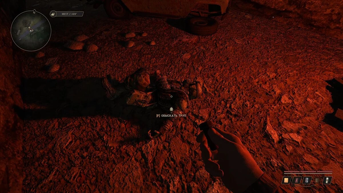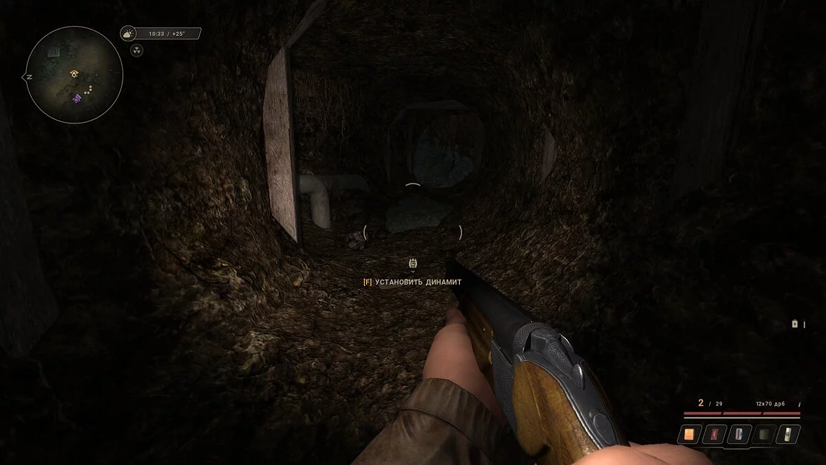 Отправляйтесь к туннелю с аномалиями. По пути обязательно используйте болты, чтобы не попасть в аномалии. У туннеля осмотрите труп и возьмите ПДА. В этот момент появится реальный сталкер, который попросит не выдавать его Сидоровичу. Не спешите отправляться обратно — так как вы подобрали заначку, возьмите в руки детектор и войдите в туннель. чтобы найти артефакт.