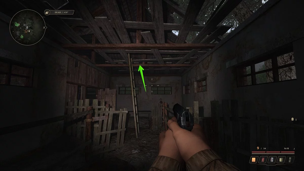 Вернитесь к Юрку в подвал и сообщите о том, что произошло. Он даст свой пистолет и немного припасов, а также расскажет, где нужно искать воров. Элеватор можете пропустить, так как там их нет. Отправляйтесь сразу на Ферму через мост.
