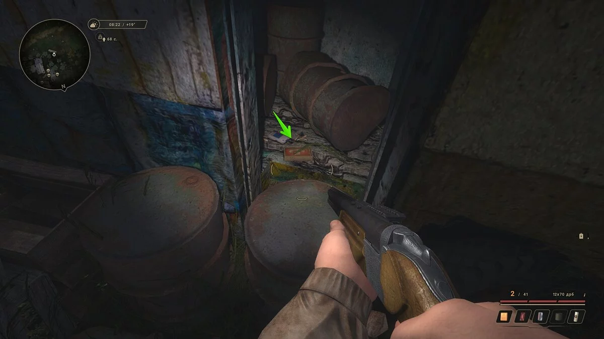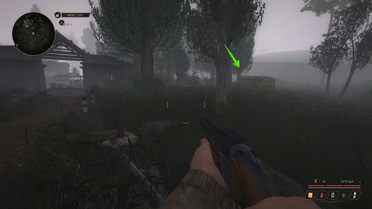 По пути ко второй аномалии вы можете исследовать Элеватор и территорию АТП. На последней засели бандиты, так что если у вас есть двустволка, можете попробовать избавиться от них — любому врагу хватит одного точного попадания. Найденный хабар подойдёт для продажи и дальнейшего приобретения более нужных предметов.