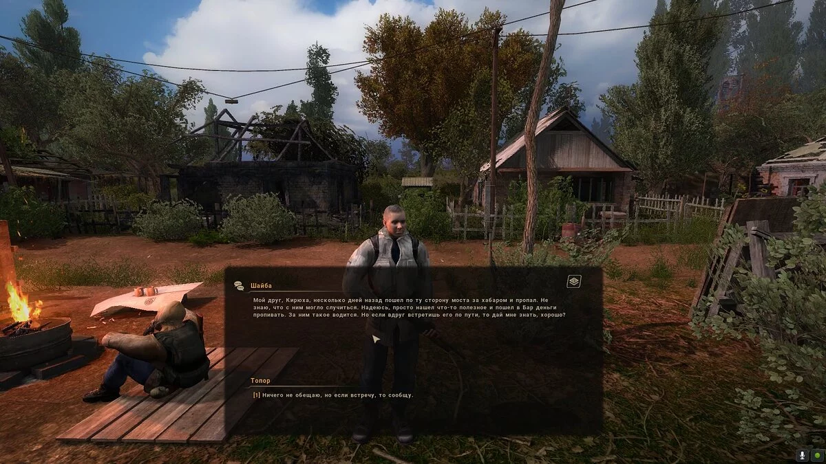Когда побеседуете с Юрком, на выходе встретите сталкера по кличке Шайба. Он попросит отыскать пропавшего друга, отправившегося за хабаром.