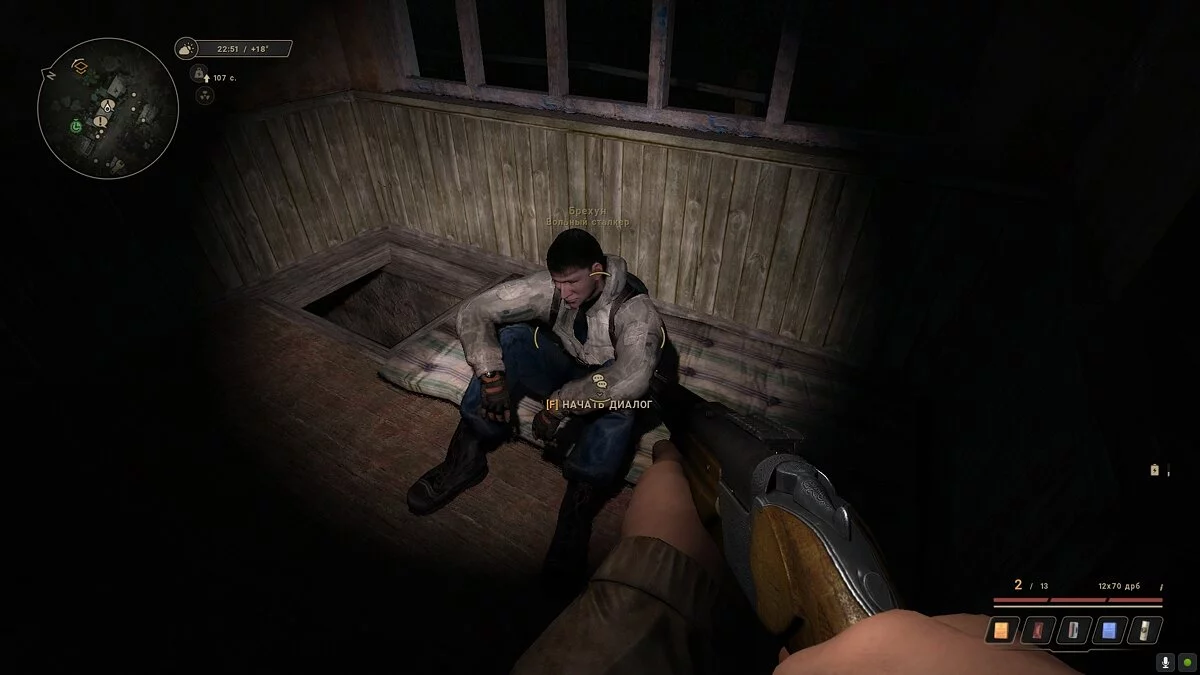 Сперва нужно дождаться ночи — сделать это можно на любой кровати, как в подвале, где вы появились, так и в бункере сидоровича. Дождитесь 00:00 и бегите к ближайшей аномалии.