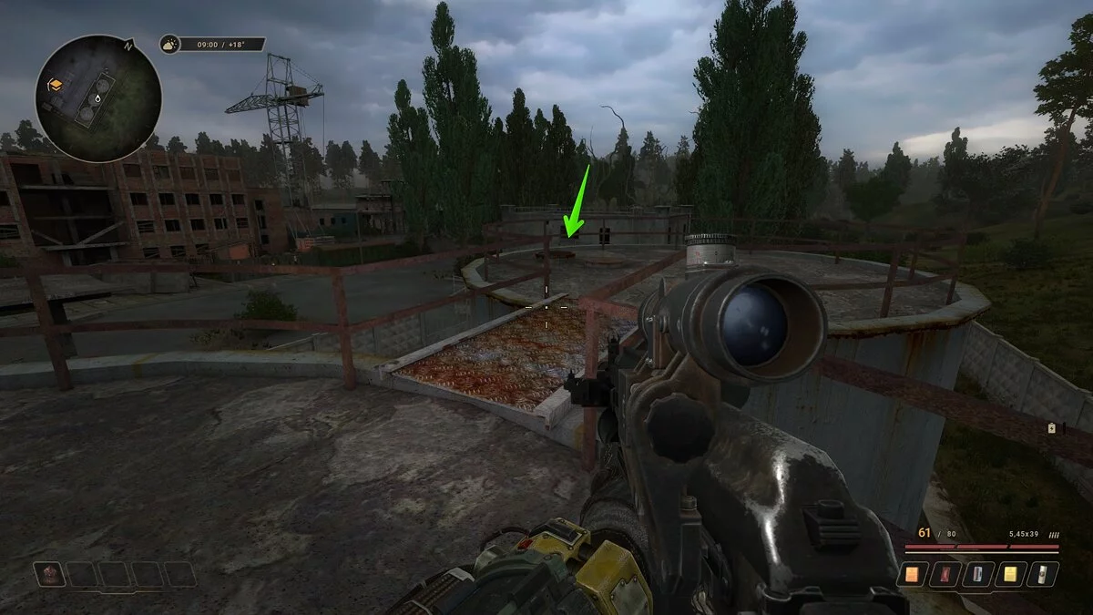 Когда будете готовы, отправляйтесь к переходу на Свалку. Если вы выполнили квест «Выгодное предложение», то уже должны были столкнуться с группой бандитов, обитающих на КПП. За зданием в кустах есть тайник с военными аптечками и антирадом. Когда перейдёте на Свалку, начнётся новая глава «За Кордоном».