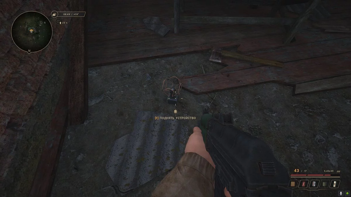 В разрушенном доме сможете отыскать устройство и забрать его.