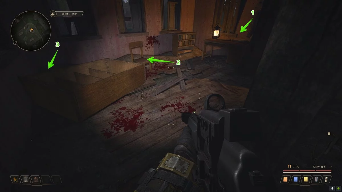 Вернитесь на поверхность и побеседуйте с Захаром. Если у вас в инвентаре нет дробовика, он потребует отыскать оружие такого типа. Следуйте на запад к ближайшей базе и осмотрите труп сталкера в кустах. На этой же поляне будет стая котов, так что стоит быть осторожнее. Дробовиком пользоваться необязательно, просто поместите его в инвентарь и вернитесь к сталкеру.