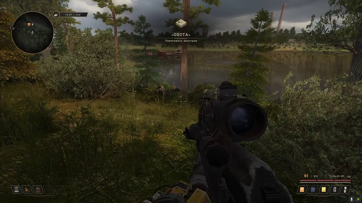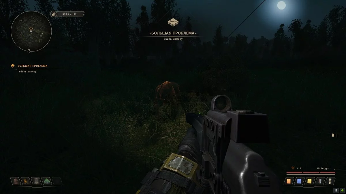 Через некоторое время Рак снова свяжется с Топором и попросит прибыть на нефтебазу. Чтобы получить небольшую награду, можете согласиться поохотиться с отрядом «Свободы» на химеру. Рекомендуем запастись аптечками и патронами.