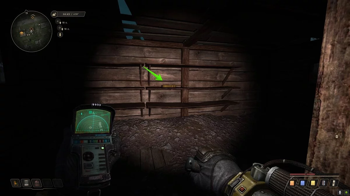 Убейте нескольких наёмников, окруживших вас, затем бегите в деревню. Там пообщайтесь с помощником учёного, которого вы спасли ранее. Он расскажет кое-что, а вам придётся спрятать полученный артефакт. Это можно сделать в тоннеле рядом с переходом на Кордон.