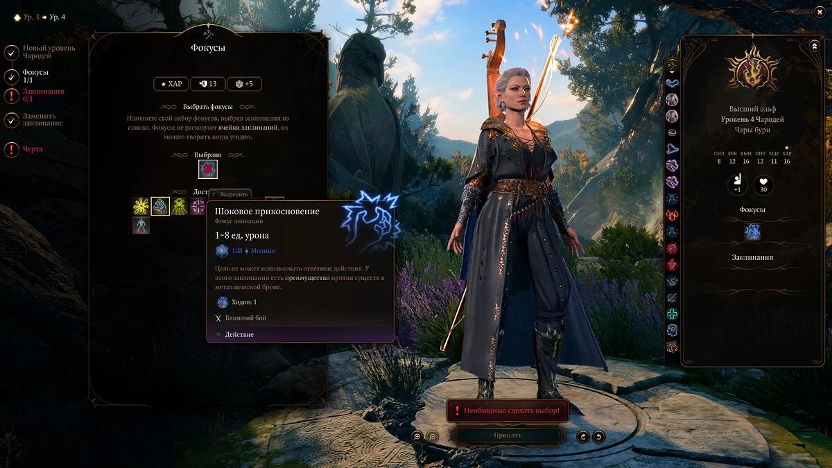 Фокус — однозначно «Шоковое прикосновение», потому что для чародея этого подкласса очень важно использовать те спеллы, которые имеют отношение к грому и молниям.