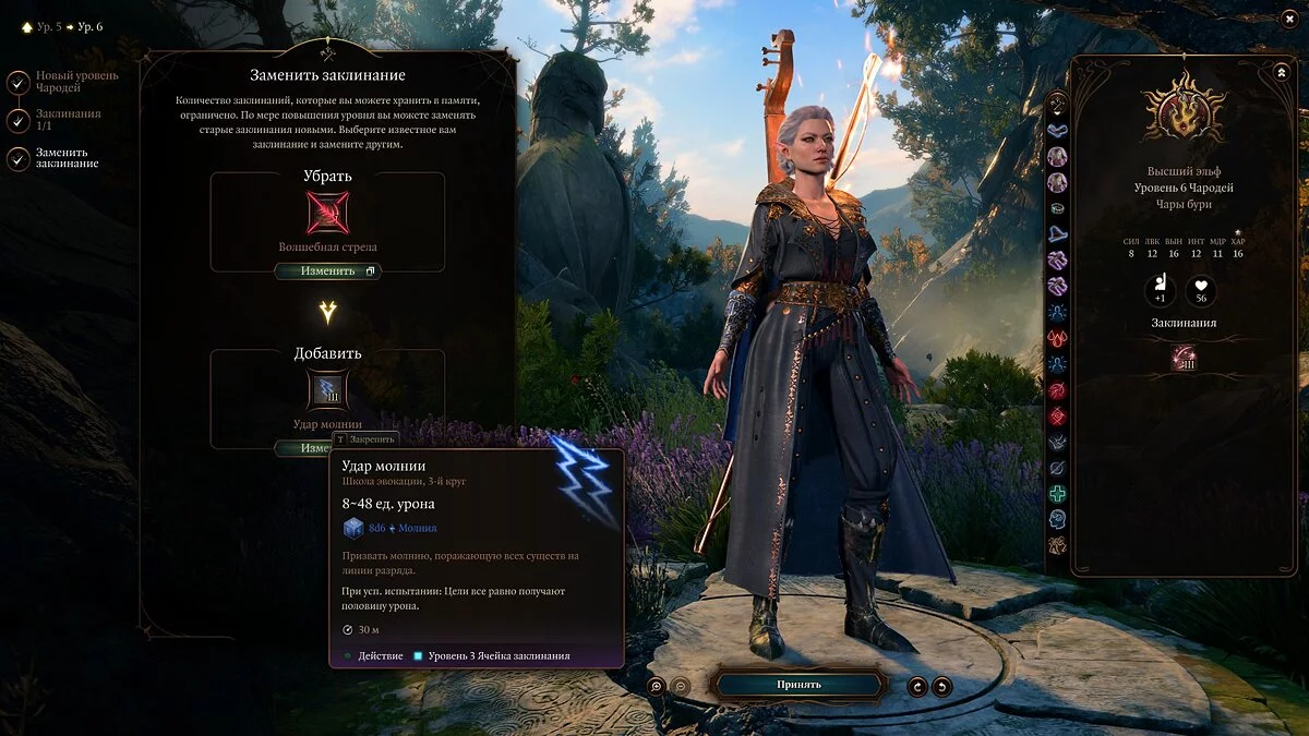 Перечисленные заклинания можно брать в любом порядке, но обязательно следует заменить уже несильно полезную для нас «Волшебную стрелу» на «Удар молнии». Финальный список ваших способностей должен быть таким: