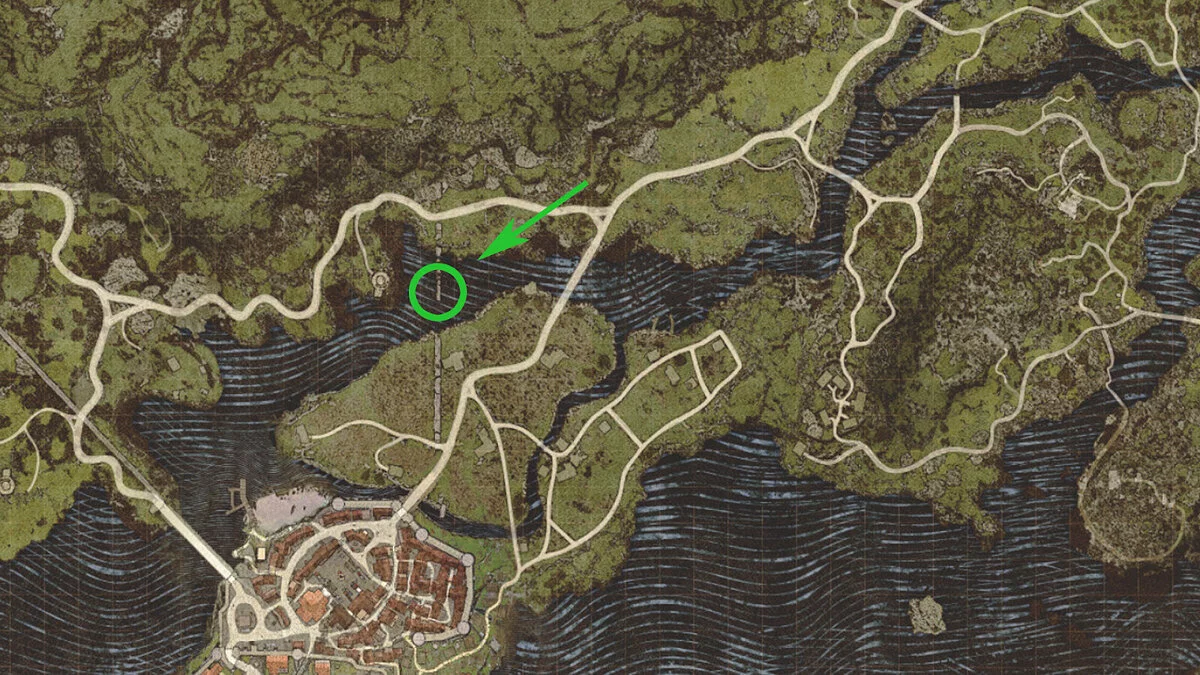 На юго-востоке локации Вермунд, недалеко от безымянной деревни. Чтобы попасть в эту деревню, нужно пройти деревянный мост. Жетон лежит на камнях, недалеко от этого моста.