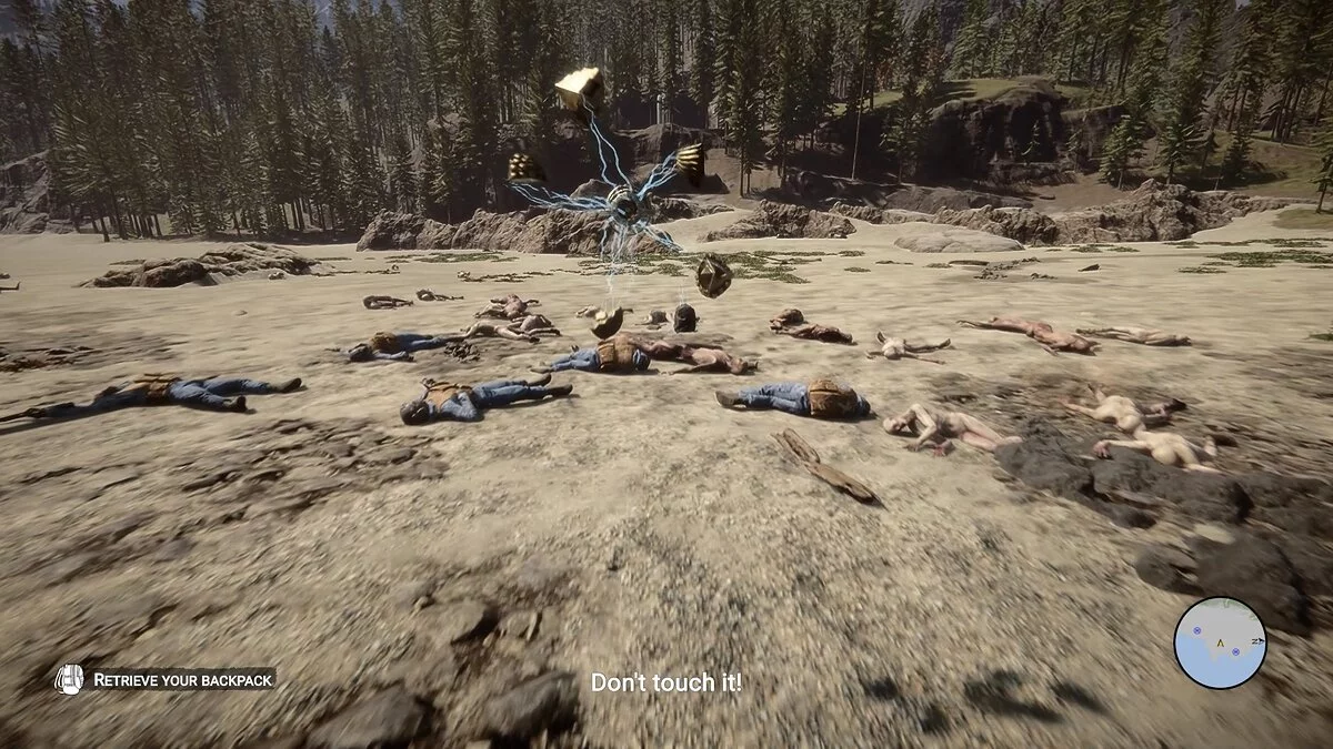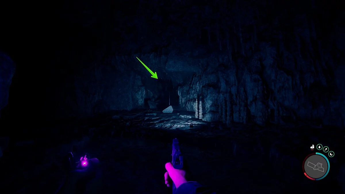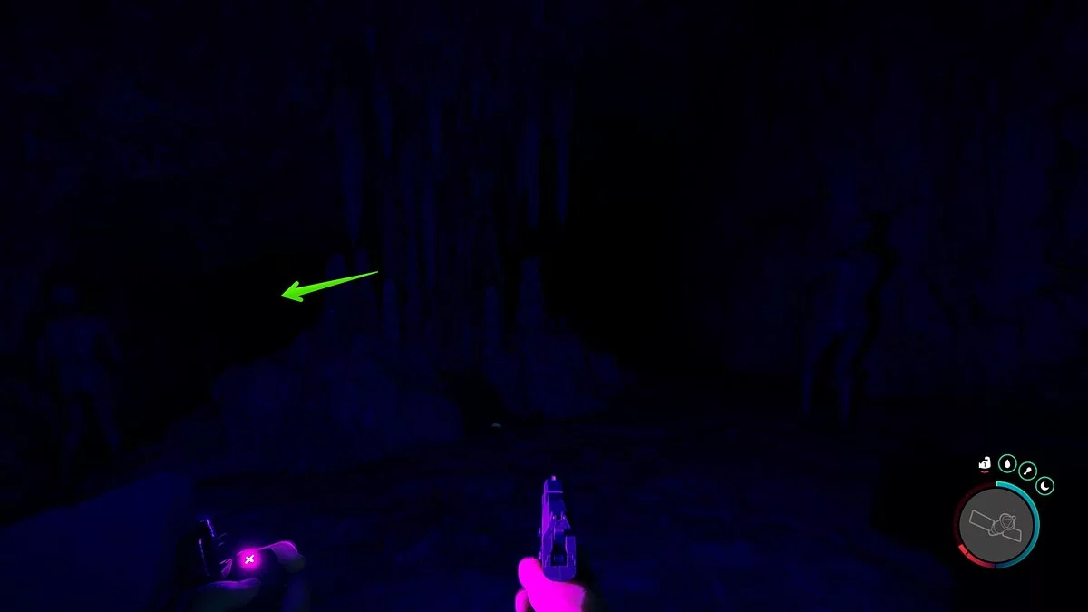 Если вы играете впервые и ещё не посещали эту пещеру ранее, вернитесь назад тем же способом, а на последней развилке сверните направо. В конце туннеля на подвешенном трупе заберите электрошокер.