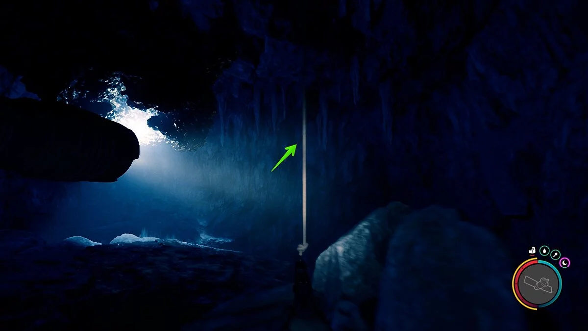 Покиньте корабль и бегите по единственной тропе, которая ведёт на вершину пещеры и найдите здесь верёвку, а затем ещё одну.