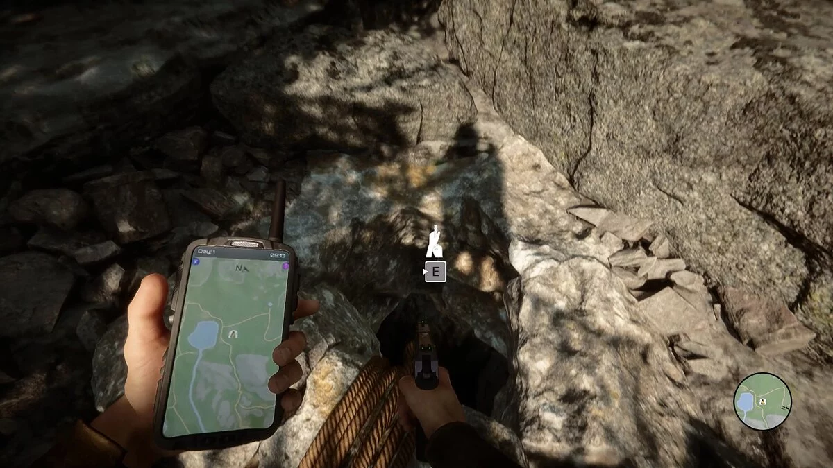 Чтобы облегчить поиски артефактов и прохождение игры, вам понадобится отыскать тросомёт, который спрятан в одной из пещер в западной части острова. Вход расположен неподалёку от реки, перетекающей в озеро. Как обычно, вход в подобные данжи будет заблокирован деревянными досками. Воспользуйтесь любым подручным средством, чтобы пройти.
