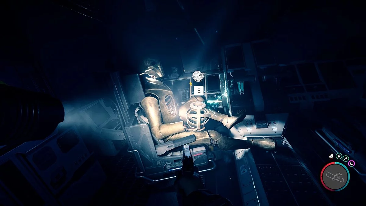 Разбейте доски и войдите в пещеру. Сразу при входе подберите полезные предметы, в том числе и патроны, а также заберите записку и взаимодействуйте с ноутбуком. На полу не пропустите баллон с кислородом, который понадобится в дальнейших приключениях.