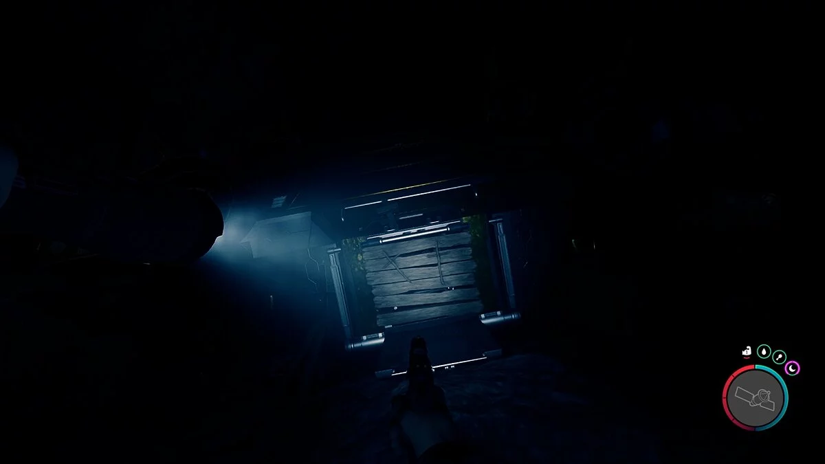 Выбравшись из воды, вы окажетесь у развилки. Слева будет заколоченный проход, а справа открытый. Как вы уже поняли, путь к артефакту лежит через сломанные доски.