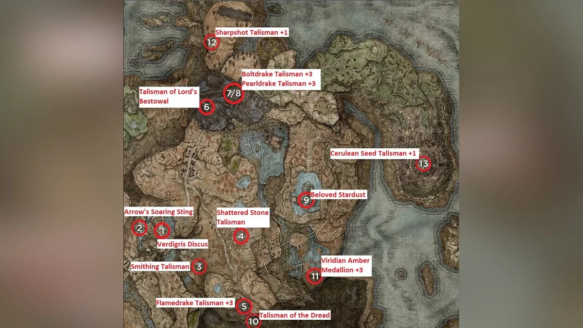 Для начала кратко рассмотрим все новые талисманы DLC Elden Ring и регионы, в которых их можно найти: