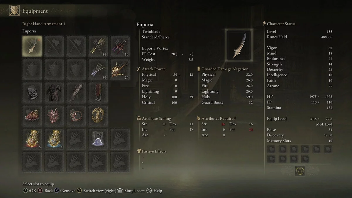 Дополнение Elden Ring Shadow of the Erdtree может похвастаться множеством уникального и мощного оружия. Одним из легендарных клинков является Эйфория (Euporia Twinblade), которую можно найти на более поздних этапах дополнения. Рассказываем, что нужно сделать, чтобы добраться до этого оружия.