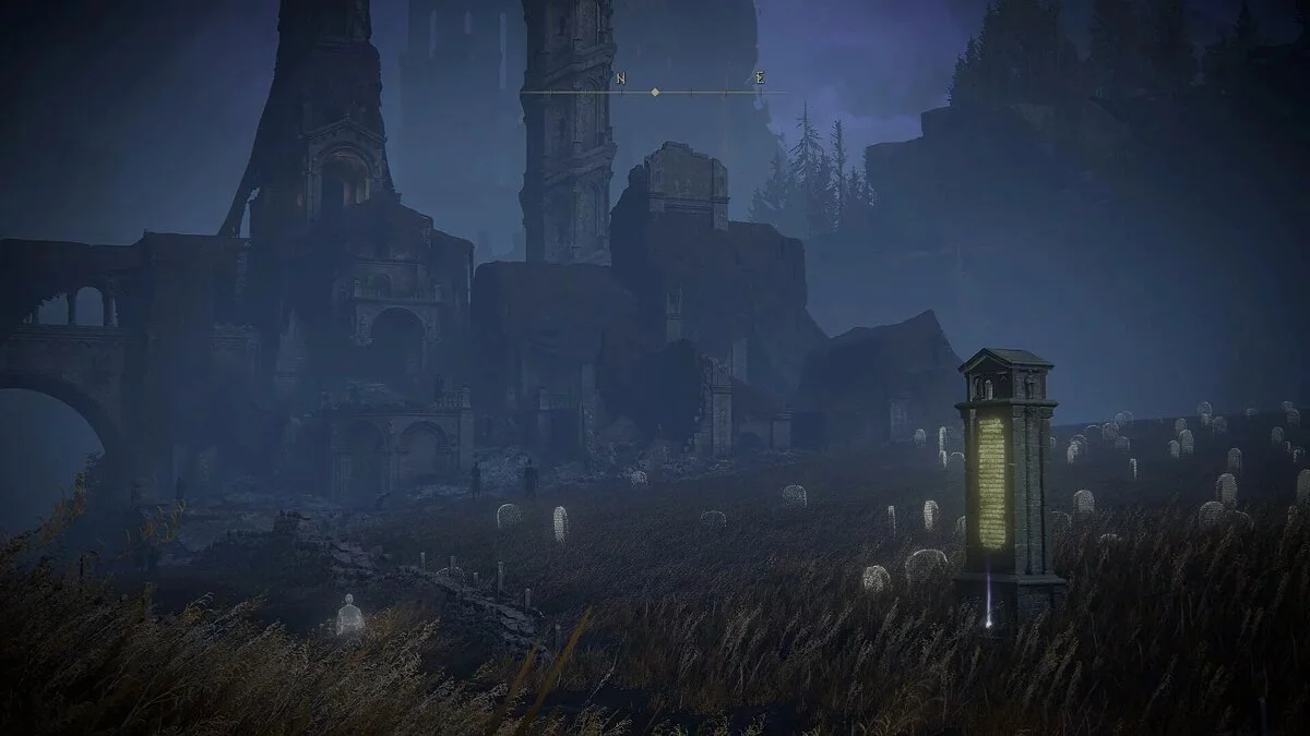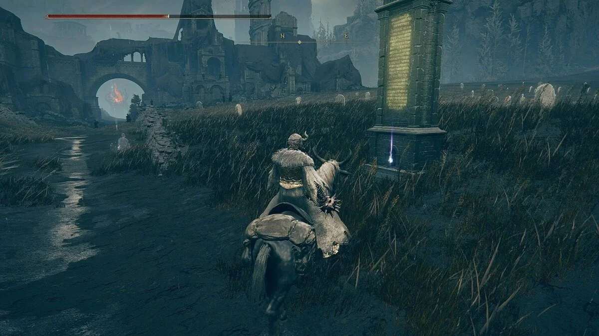 Вернувшись к Выжженным руинам, обязательно активируйте место благодати, которое находится к северу от зданий. Рядом вы увидите небольшую тропу, которая ведет на восточное кладбище. Среди Теневой нежити вы можете заметить одну выделяющуюся особь, которая держит мерцающий горшок. Преследуйте его как скарабея из оригинальной игры и убейте, чтобы получить еще один осколок. Если вы не успеете его добить, тон исчезнет.