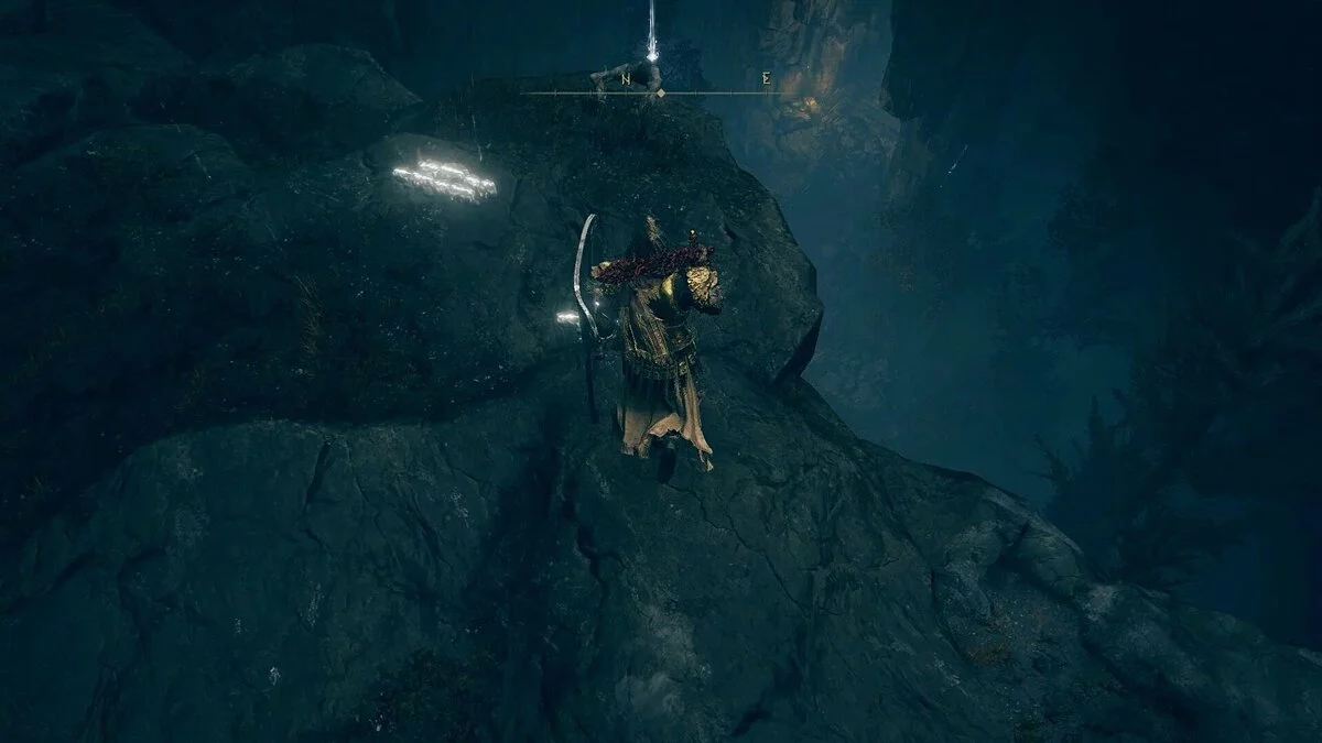 Зайдите в комнату справа. Вы встретите колдуна, с которыми ранее сражались в Райя Лукарии. Он не представит особой угрозы. Просто бейте по его щиту, пока не сломаете стойку. Затем добейте его, пока он в беззащитном состоянии. Перед выходом возьмите Руну Теневого Царства (4). Затем идите налево от того места, где вы сражались с рыцарем, и поднимитесь по лестнице. Идите по этому пути наверх, и вы окажетесь на скале с видом на водопад. Посмотрите налево, и вы увидите лестницу, которая поможет вам забраться на стену замка.