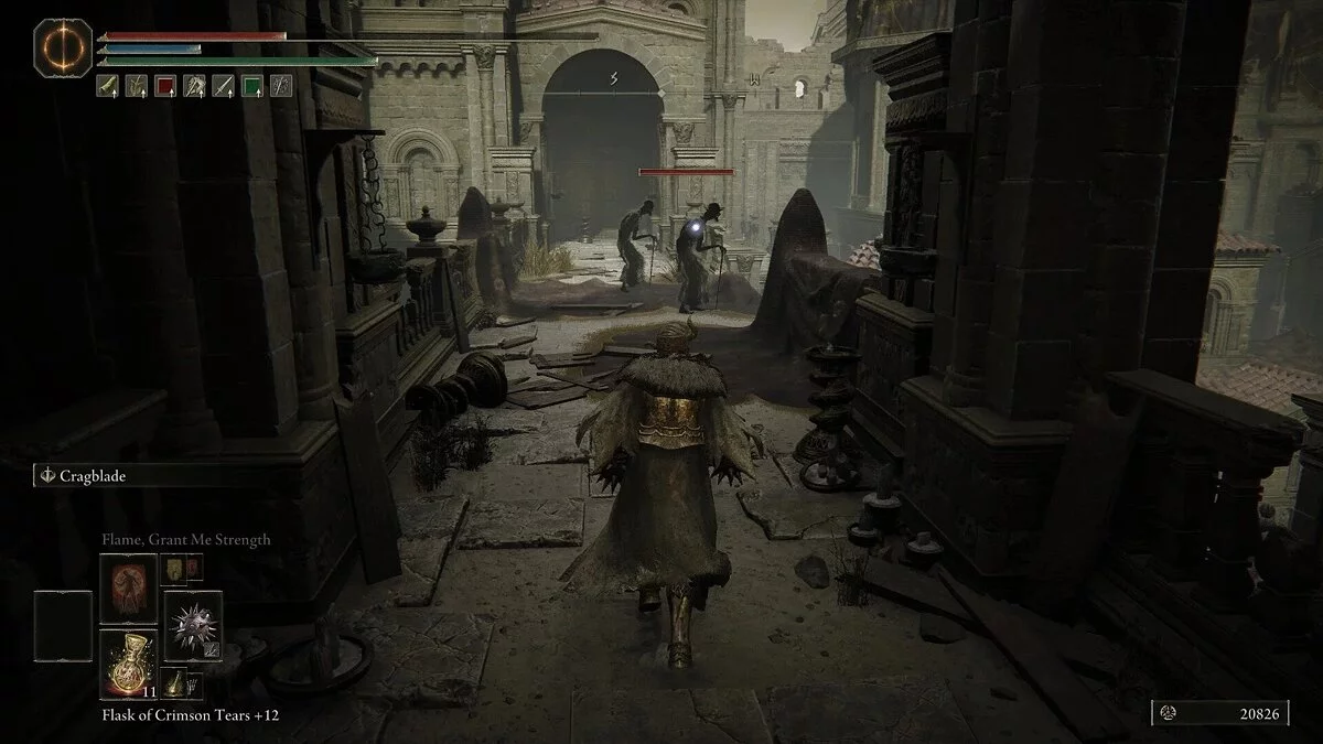 Поднимитесь по лестнице, чтобы активировать место благодати, но не отдыхайте, так как мы не еще обыскали всю локацию. Пройдите через дверь и сверните налево. Справа будет опасный враг, поэтому не стоит к нему приближаться. Далее вы найдете заклинателей, которые мешали вам в самом начале. Убейте их. В конце моста будет запертая дверь. Вернемся к ней позже.