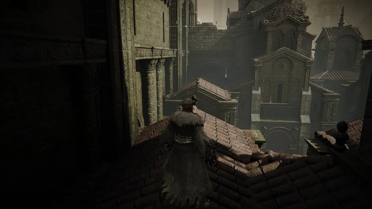 Рядом с дверью есть место, откуда можно запрыгнуть на балкон. От него поднимайтесь на крышу. Ступайте к левой стене и затем поверните направо. Впереди вы увидите предмет на другой крыше. Ступайте вперед до выступа. По нему можно добраться до Мрачного кузнечного камня. Возвращайтесь к мосту и прыгайте на крыши с противоположной стороны. Спускайтесь вниз и направляйтесь в переулок. Убейте большую тень и подберите Огненную смазку (Messmerfire Grease). На противоположном конце улицы есть еще один фонтан с несколькими противниками. Убейте их и заберите у подножия Мрачный кузнечный камень.