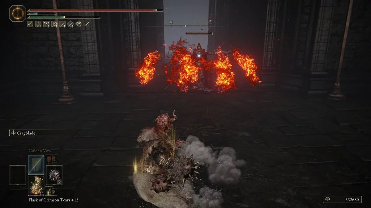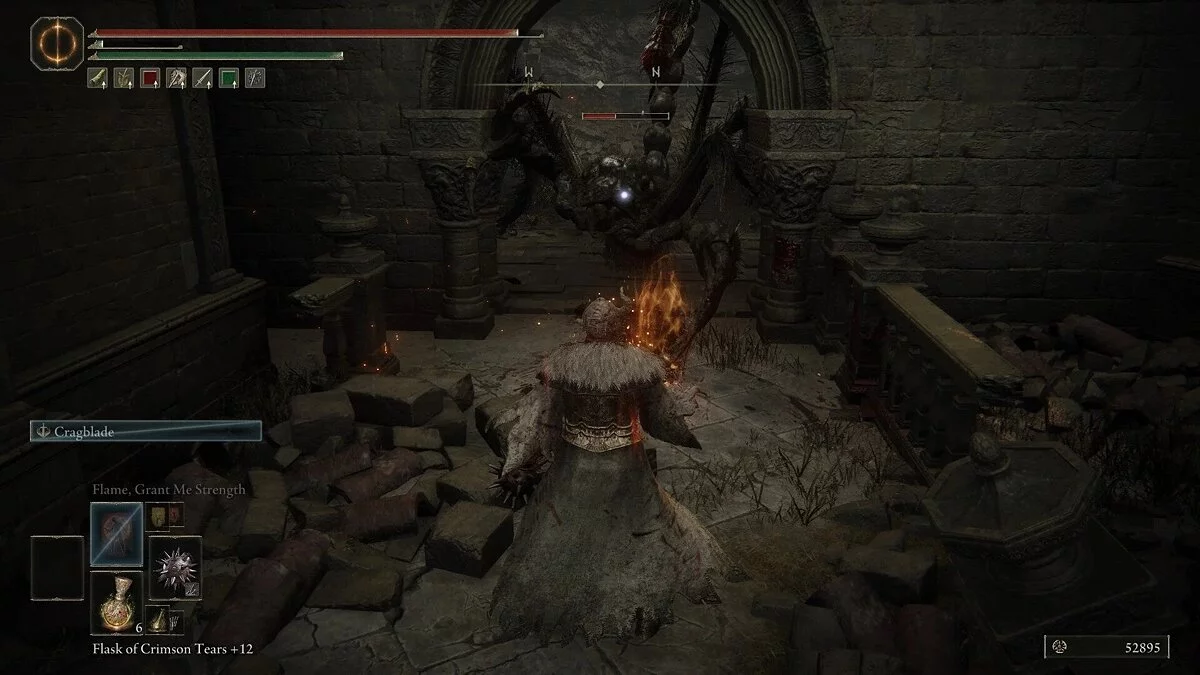 Поднявшись по лестнице, выйдите к первому месту благодати. Теперь вы готовы к битве с боссом. Телепортируйтесь к последней точке перед ареной. Пройдите через дверь, чтобы начать битву.
