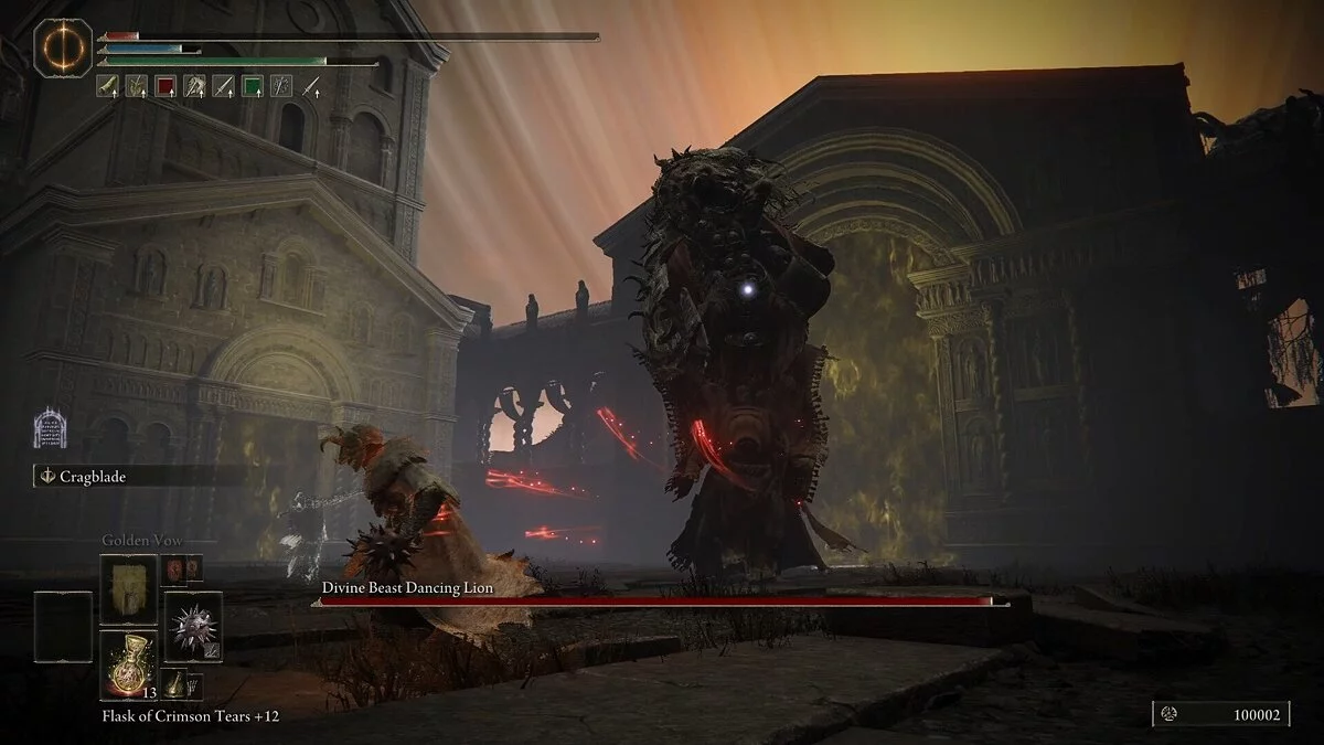 Священный танцующий лев — крупный враг, который атакует связкой «захват — удар». Старайтесь бить его в боковую часть или по хвосту. Ни в коем случае не заходите под него, так как он сильно бьет по площади. На самом деле его мувмент очень простой. Перед атакой лев поднимает голову. Будьте готовы вовремя увернуться. Лучший шанс на ответный удар: дождаться, пока босс встанет на задние лапы и попытается рухнуть на вас. Вовремя отпрыгните и нанесите несколько мощных ударов. Щит — отличный вариант, чтобы заблокировать урон до подходящего момента.