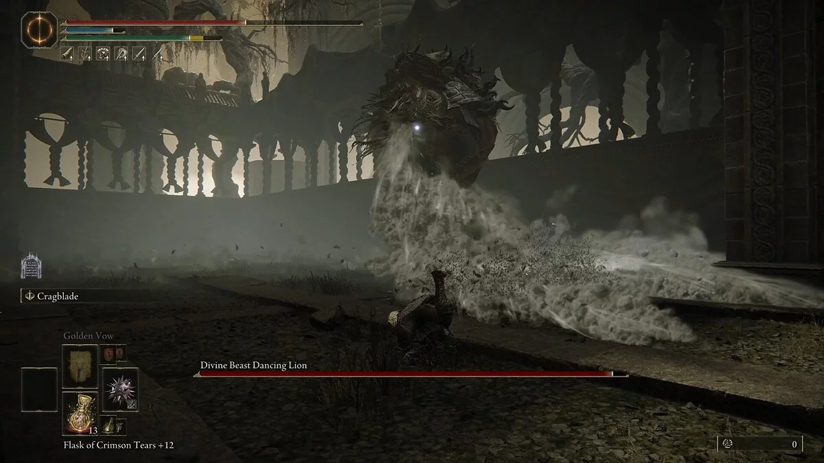 Когда лев стоит и сжимает зубы, он собирается вас схватить. Это очень мощная атака, поэтому старайтесь рассчитывать время до нажатия кнопки уворота. Если вы заметите, что босс стоит и смотрит вниз, то это значит: он готовится к пыльной буре. Заранее отступите и медленно двигайтесь вокруг. Когда пылевой поток начнет движение в вашу сторону, начните уклонятся, чтобы избежать урона. Попробуйте после уклонения провести несколько быстрых атак по боссу.