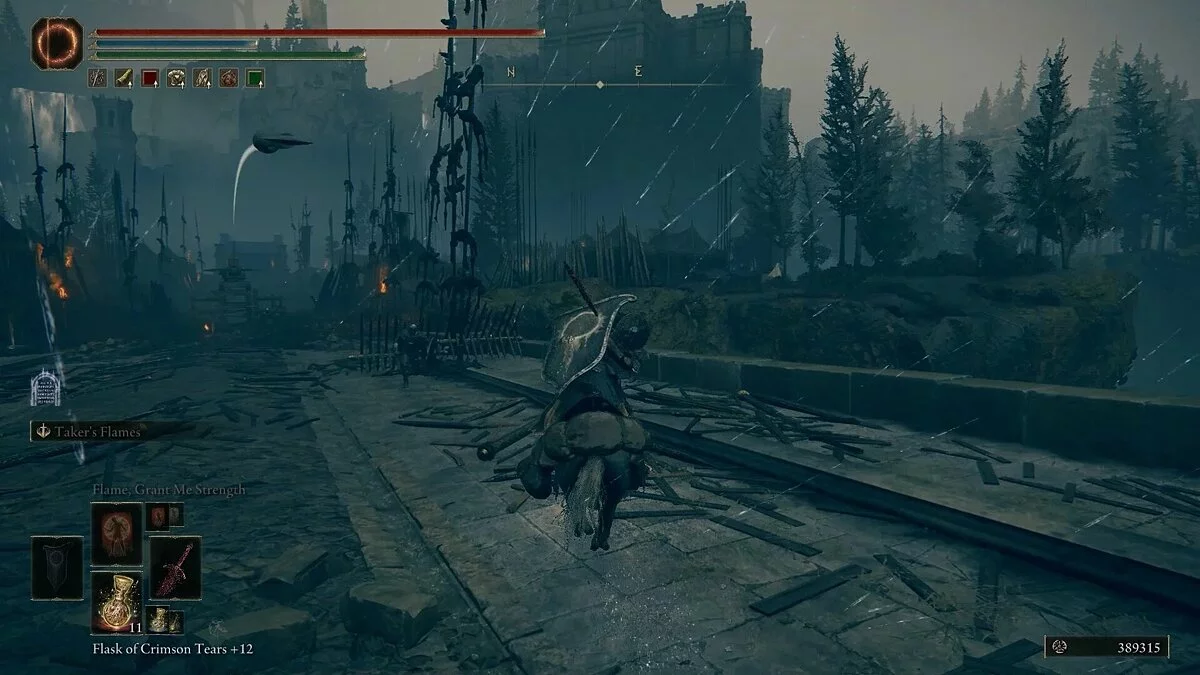 Добравшись до места благодати, следуйте по дороге на северо-восток через Великие Ворота. На мосту будут находиться пара рыцарей, но настоящая угроза — это баллиста на противоположной стороне, которая может нанести огромный урон и сбросить вас с Торрента. Старайтесь уклоняться в разные стороны, чтобы случайно не получить стрелу.