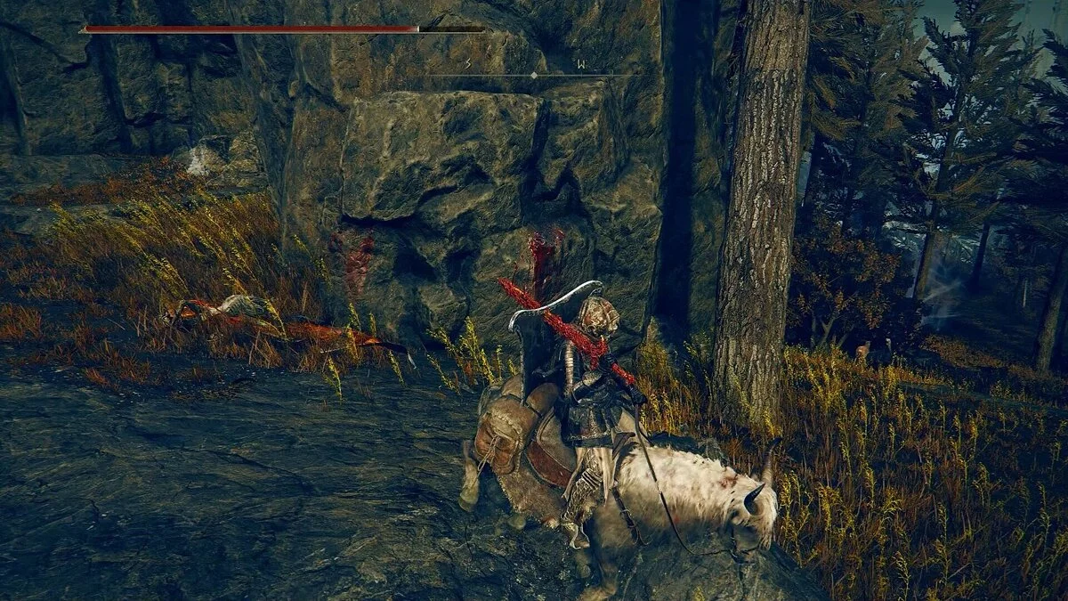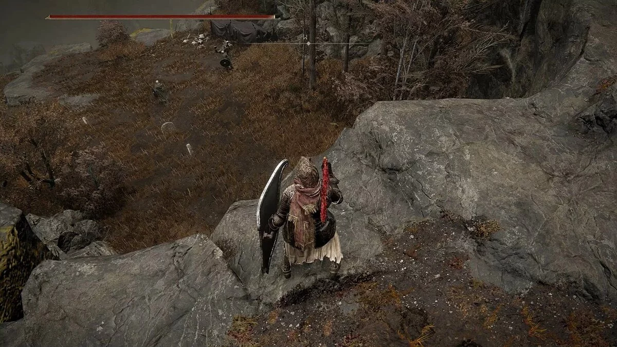 Теперь идите по дороге, которую охранял рыцарь. Наверху вы найдете еще один крест Микеллы, еще один фрагмент древесного семени. Также разблокируйте место благодати — «Контрольно-пропускной пункт замка Энсис». Также вы найдете записку, в которой подробно описывается путь к Микелле. Мы не можем прямо сейчас отправиться в дорогу, но эта инструкция пригодится нам в будущем. Отдохните в месте благодати. Рядом с крестом есть закрытые ворота. Отправляемся по тропинке справа от ворот. Мы придем к скале, где отдыхает рыцарь. Подкрадитесь и убейте рыцаря. Спрыгните на нижний уступ. Возьмите смолу с тела на уступе и затем спрыгивайте вниз.