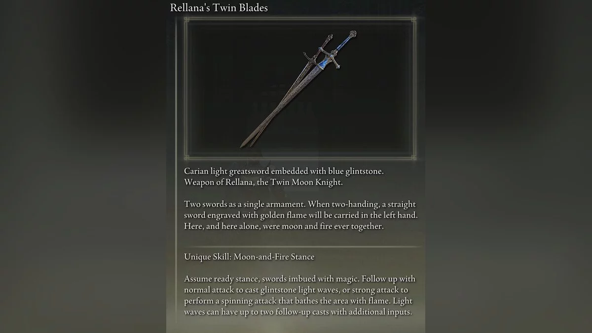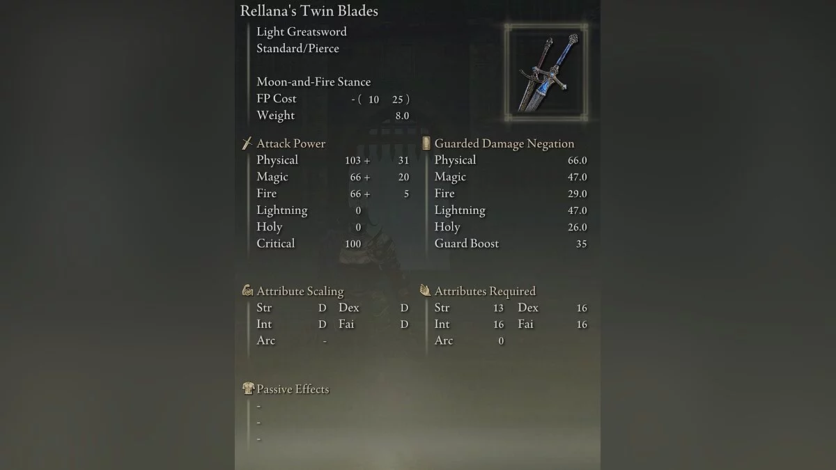 Этот билд использует легкий двуручный меч, который масштабируется с ловкостью, наносящий хороший урон и позволяющий ломать стойкость врагов.