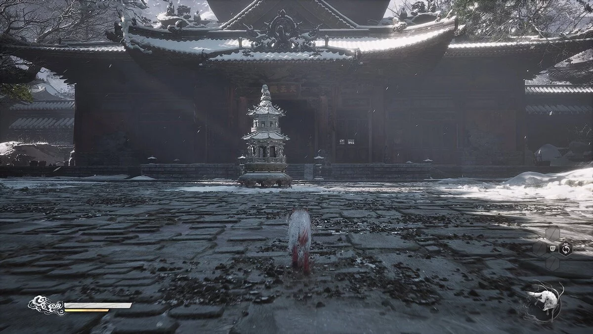 Засніжена стежка в Black Myth: Wukong — це третя глава гри. На початку глави ви побачите молодого монаха, замаскованого під статую. Продовжуючи рухатися по засніженій стежці, ви зустрінете летючих мишей та інших заморожених монахів, яких потрібно перемогти. Також зверніть увагу на женьшень, що росте біля кам'яного стовпа, та нефритовий лотос у невеликому басейні.