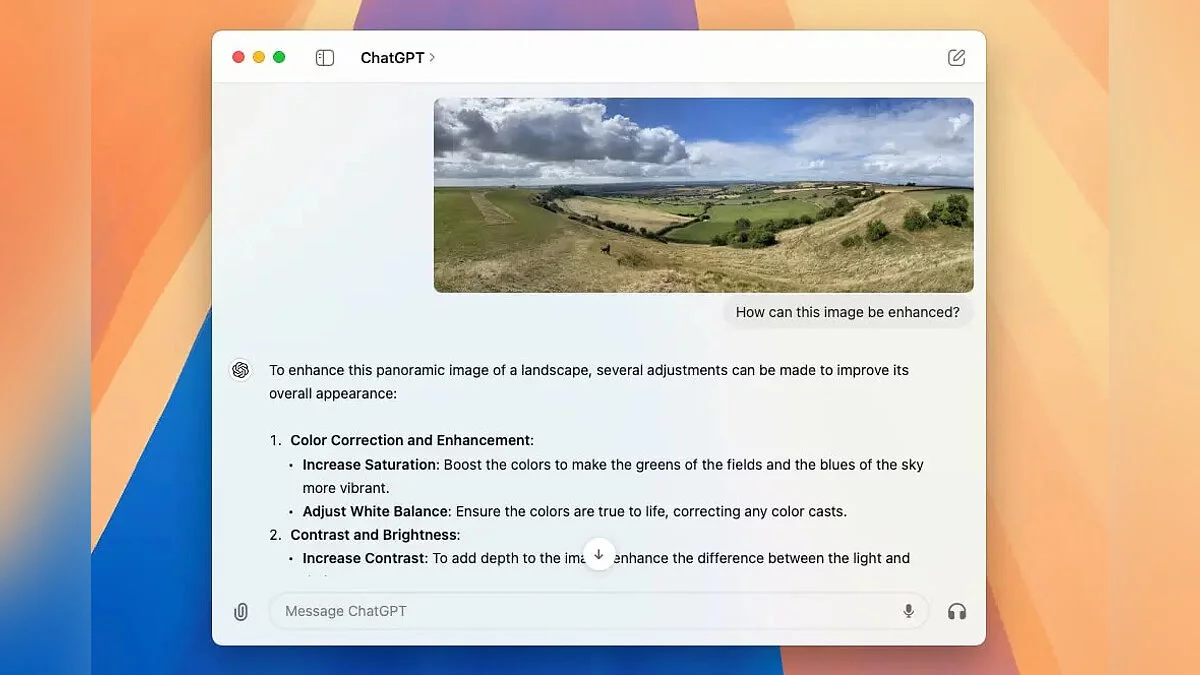 Додаток для macOS включає кілька додаткових функцій, які роблять його більш зручним в порівнянні з веб-версією. Наприклад, воно дозволяє завантажувати зображення безпосередньо з бібліотеки «Фото», веб-камери або через скріншот, що прискорює процес взаємодії з зображеннями. Також доступна можливість голосового спілкування з ChatGPT, що неможливо в браузері.