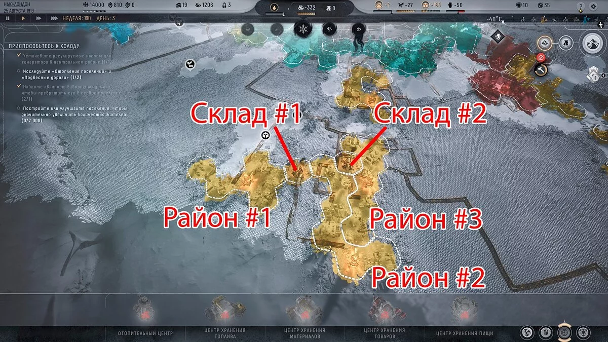 Система управління містом у Frostpunk 2 також значно розширилась. Тепер вам не потрібно прокладати дороги або планувати розташування будівель для задоволення потреб жителів. Все це замінено великими районами: житловим, продовольчим, видобувним, промисловим і логістичним. Назви говорять самі за себе.
