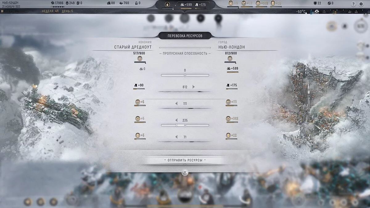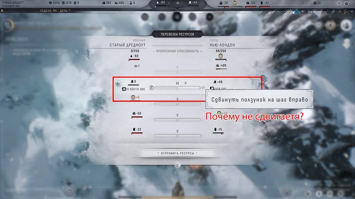 Під час проходження сюжетної кампанії Frostpunk 2 (сценарій за Нью-Лондон) ви зіткнетеся з завданням доставити нафту зі Старого Дредноута в Нью-Лондон. Через красивий, але вкрай невдалий організований інтерфейс, ви або не знайдете меню пересилки товарів (і жителів), або не зможете переслати більше 60 або 66 нафти. Цей гайд допоможе вирішити ці труднощі.