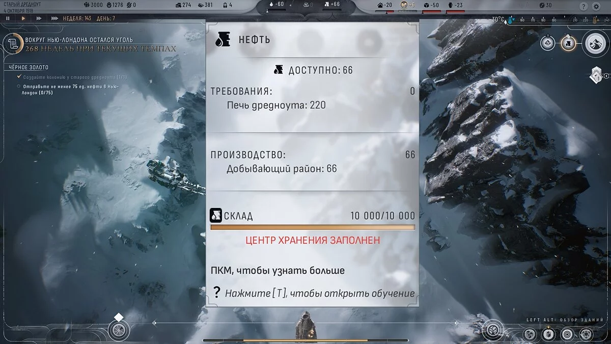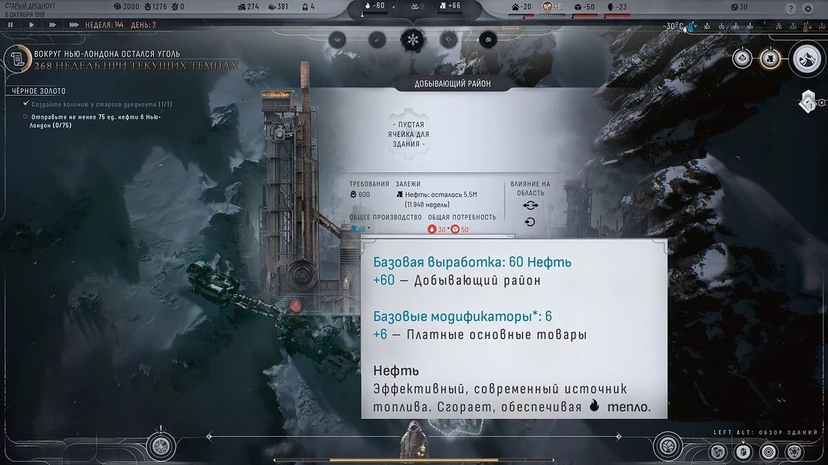 Отже, ви заснували колонію в Старому Дредноуті. Гра ставить вам завдання перевести 75 нафти в Нью-Лондон.
